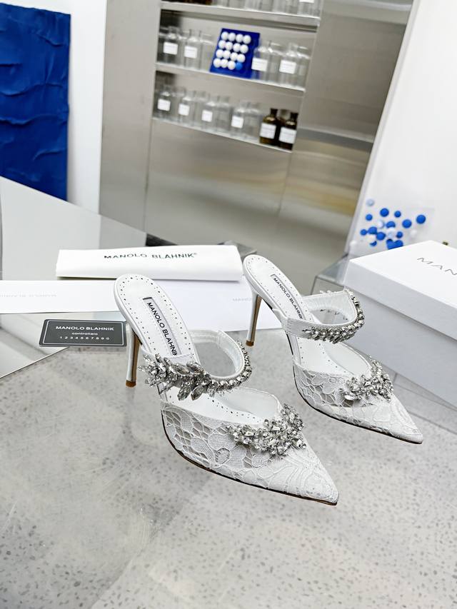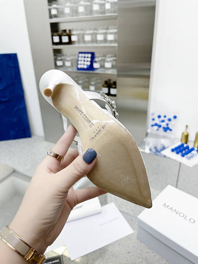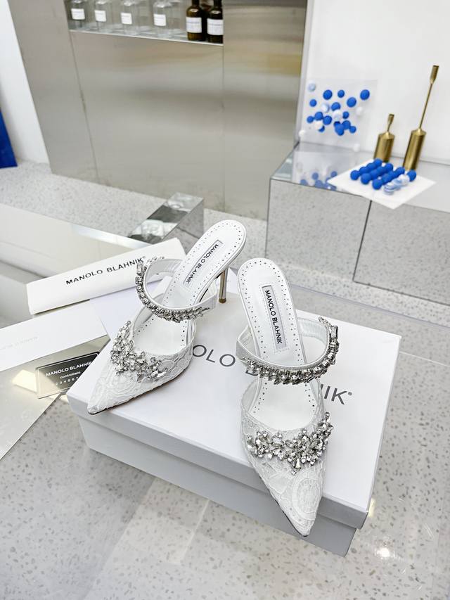 顶级版本 Manolo Blahnik 四季经典款 90毫米“Lurum”施华洛世奇水晶丝绸缎面穆勒鞋高跟鞋 顶级代购版本 超精致一比一零离距打造!用最好料材打