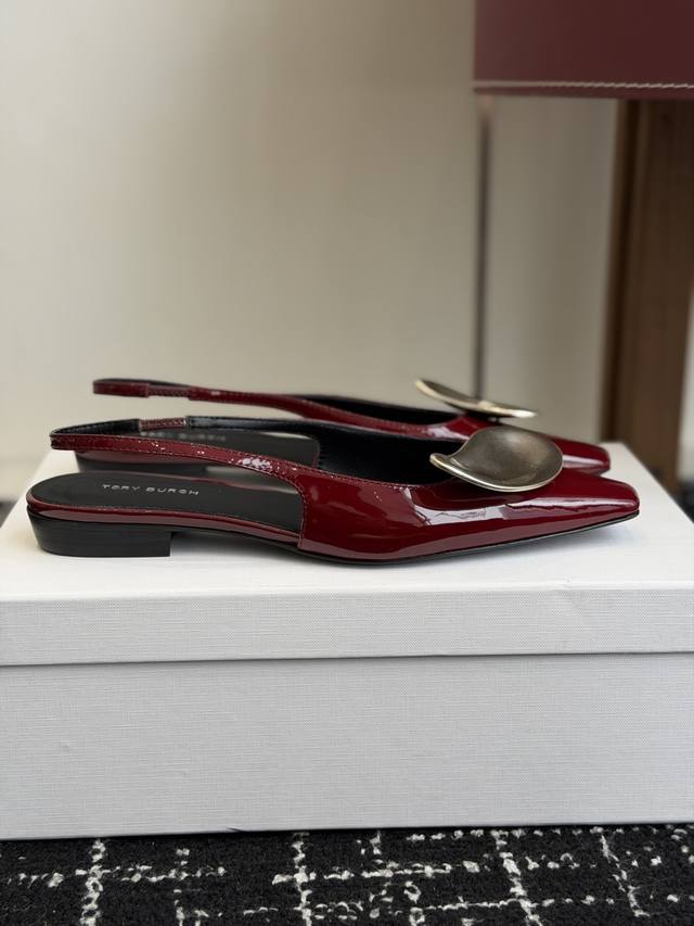 代购级 DDD Tory Burch 26Ss春夏后空当头漆皮凉鞋 搭配经典后空凉鞋 简单百搭! DDD 姐妹们一定要赶上这趟车同步官方两个颜色 优雅绝绝子新品2026 Tory Burch 低跟凉鞋 DDD 搭配西装裤或针织裙 完美呼应秋日氛围 延续经典浅口单鞋造型 DDD 复古方形鞋头 对于脚宽更加友好 搭配单根脚背带设计 会显得脚很纤瘦 金属搭扣是可以调节的 方便穿脱~ DDD 鞋面是进口漆皮材质 质感柔软细腻亲肤 走路也不会板脚 很舒服 鞋垫羊皮+内里都是已官方 DDD 大底是意大利真皮 材质 有
