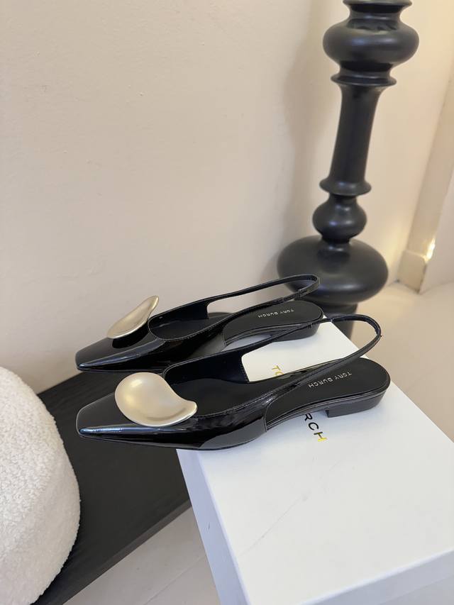 Tory Burch 26Ss春夏后空当头漆皮凉鞋 搭配经典后空凉鞋 简单百搭! DDD 姐妹们一定要赶上这趟车同步官方两个颜色 优雅绝绝子新品2026 Tory Burch 低跟凉鞋 DDD 搭配西装裤或针织裙 完美呼应秋日氛围 延续经典浅口单鞋造型 DDD 复古方形鞋头 对于脚宽更加友好 搭配单根脚背带设计 会显得脚很纤瘦 金属搭扣是可以调节的 方便穿脱~ DDD 鞋面是进口漆皮材质 质感柔软细腻亲肤 走路也不会板脚 很舒服 鞋垫羊皮+内里都是已官方 DDD 大底是意大利真皮 材质 有良好的耐磨耐穿的