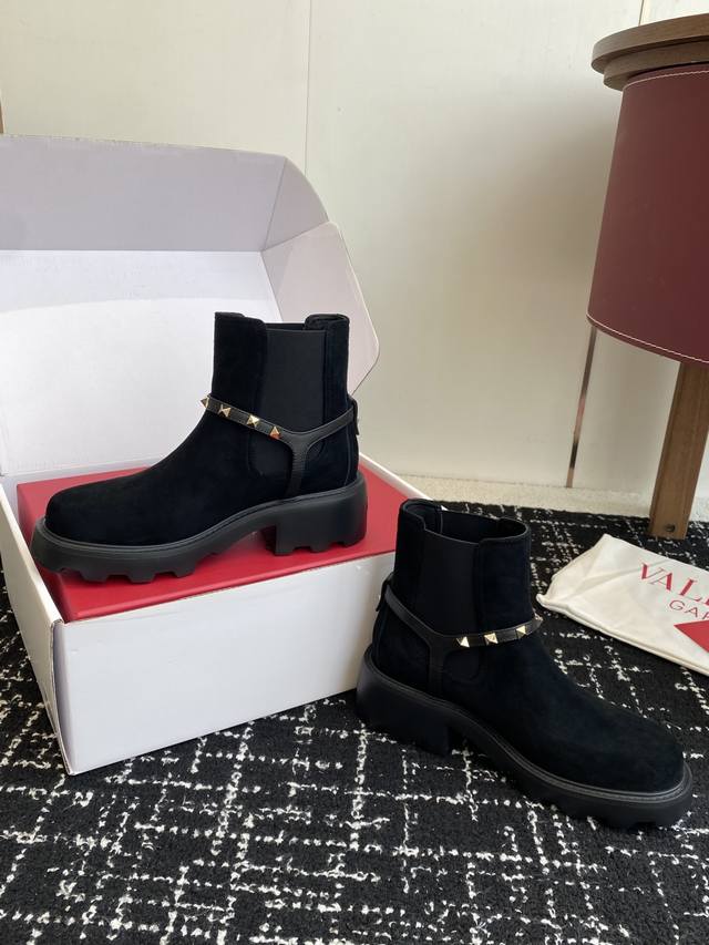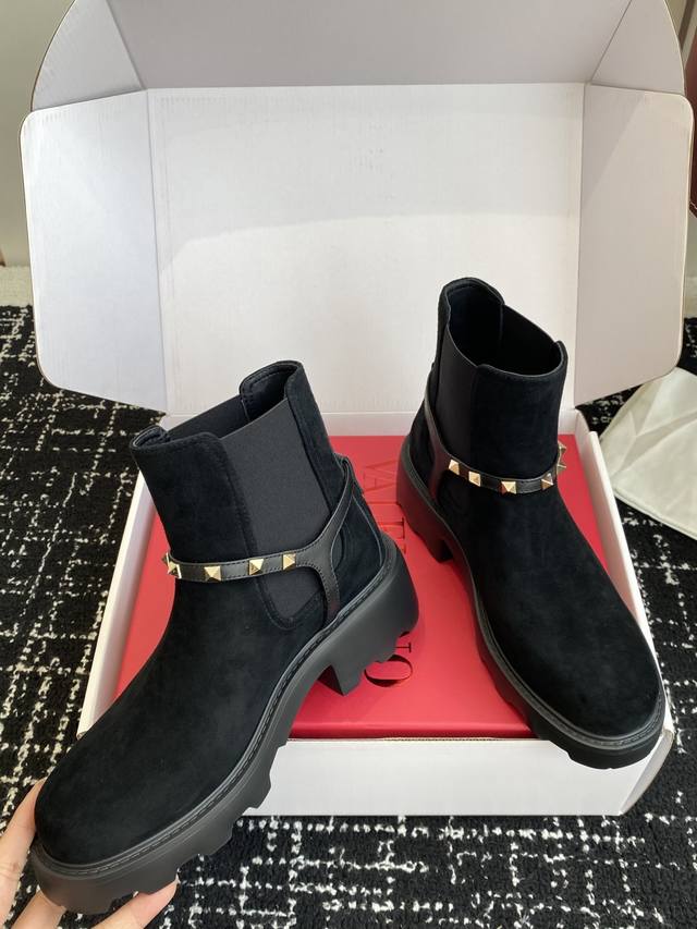 东莞代购级 官网同步盒包装 Valentino 华伦天奴经典鉚钉马丁靴 质感轻盈的橡胶大底,橡胶优越的弹性,能帮助双脚分担重量压力,缓和摩擦冲击,同时赋予卓越的耐用性,防滑性,它能够有效缓和摩擦冲击,保护你的脚部免受意外伤害。 进口:进口小牛皮 进口麂皮 内里:羊皮 垫脚:羊皮 底厚:4Cm Size:35 36 37 38 39 40 40不退换