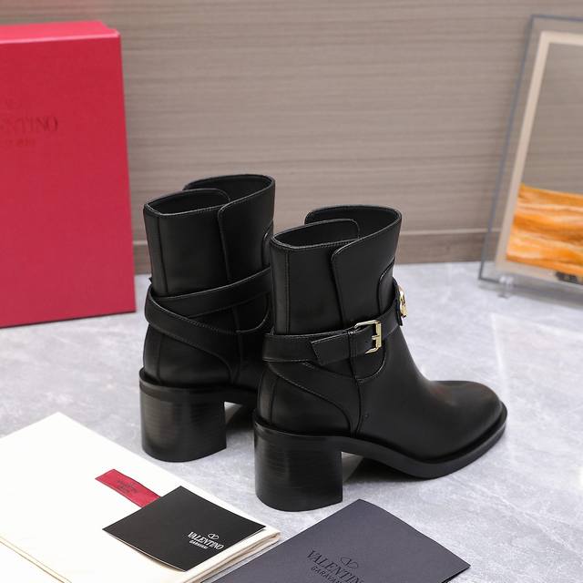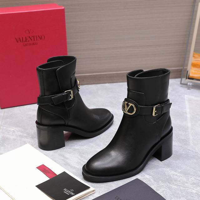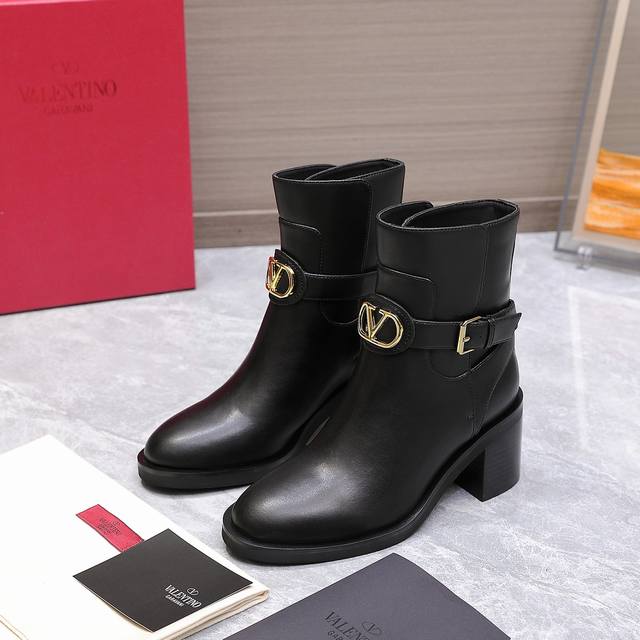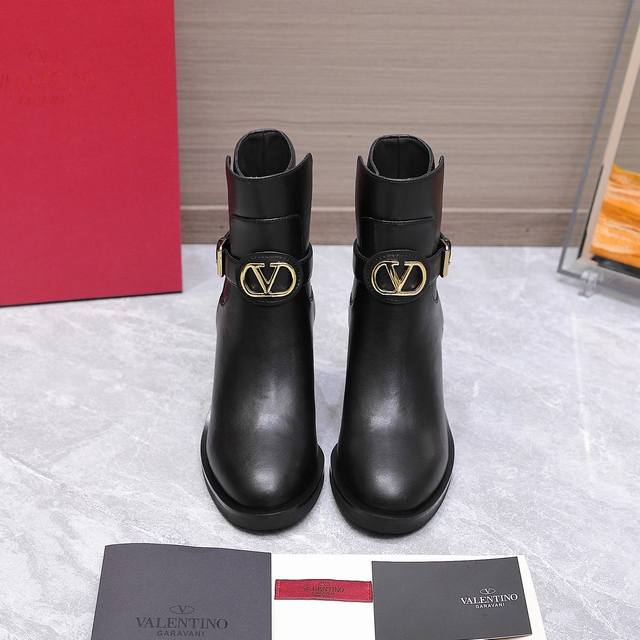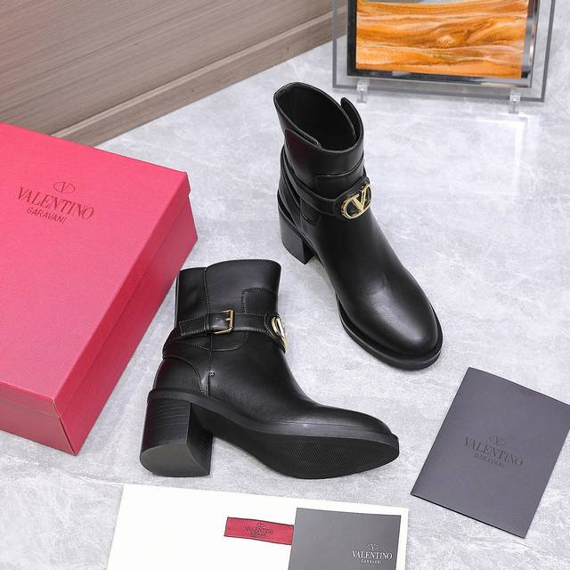 / 代购级 25Ss 秋冬新款 华伦天奴Valentino 圆头 V扣骑士短靴 华伦天奴专柜最新款 顶级版本 绝对史上最强货 欢迎对比 舒适好穿 楦型与专柜一致,优