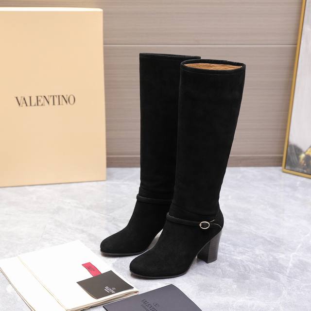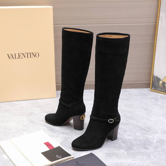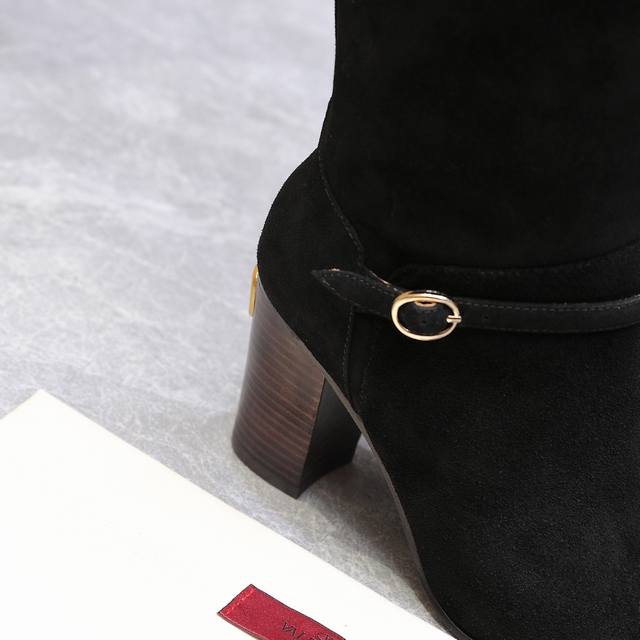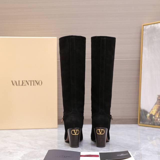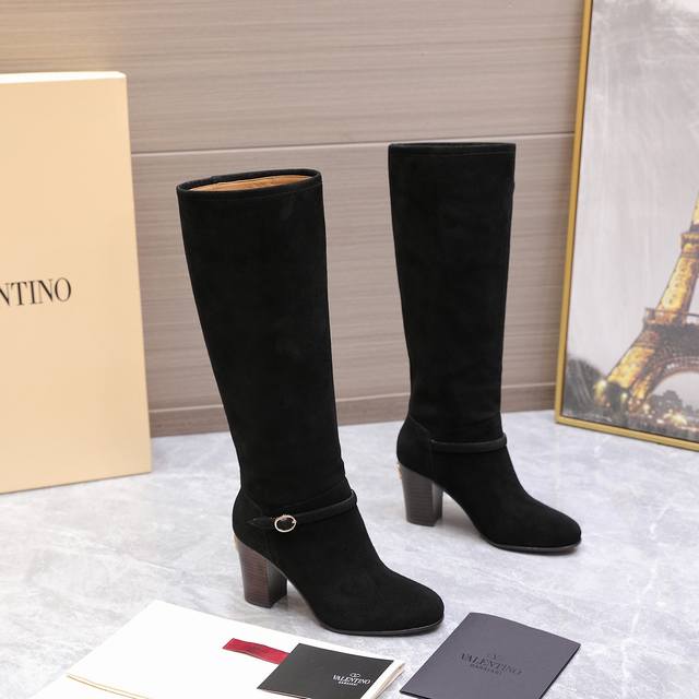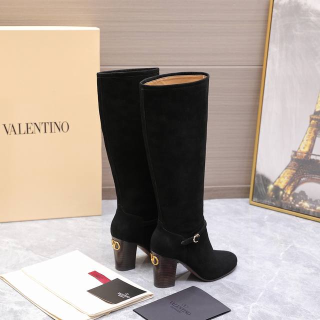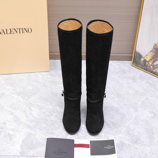 代购级 25Ss 秋冬新款 华伦天奴Valentino 小圆头 层皮跟镶V扣 长靴高靴 华伦天奴专柜最新款 顶级版本 绝对史上最强货 欢迎对比大底采用意大利进口