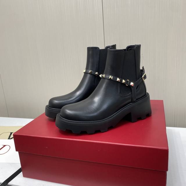 出厂价P 华伦天奴铆钉弹力带切尔西松紧短靴 经典的华伦天奴马钉靴也太好看了 特别有质感的五金衬托出满满的高级感, 上脚后惊呆的美超级显脚瘦! 新一季不负期待!值