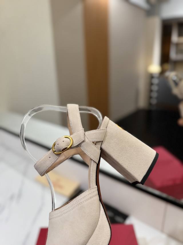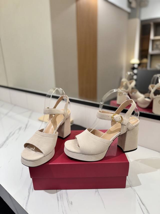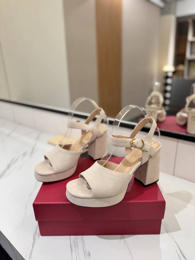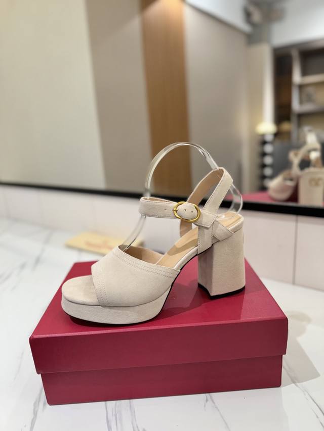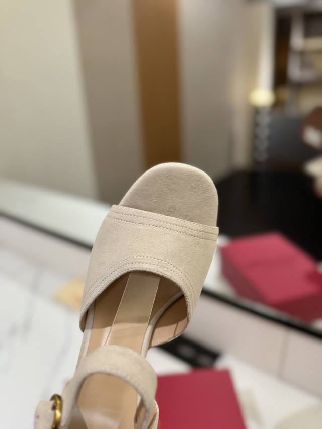 / 出厂价pp: 华伦Valentino最新款恨天高粗跟高跟凉鞋 明星同款 上脚秒变大长腿 鞋面:牛猄 内里及垫脚:混种羊皮 鞋底:意大利A级真皮大底 水台:2.5