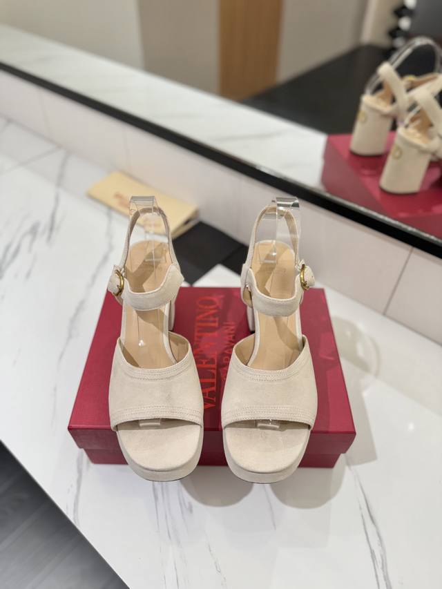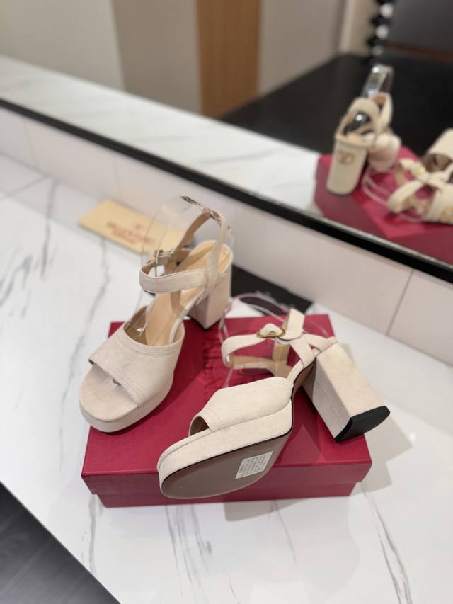 出厂价pp: 华伦Valentino最新款恨天高粗跟高跟凉鞋 明星同款 上脚秒变大长腿 鞋面:牛猄 内里及垫脚:混种羊皮 鞋底:意大利A级真皮大底 水台:2.5