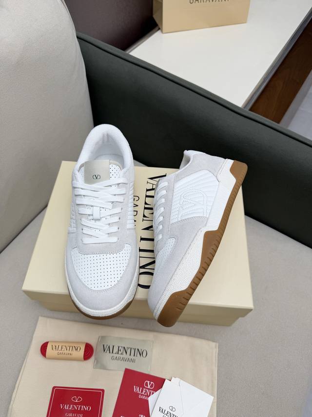 出厂价pp: DDD 1:1最高端 全新设计,全新包装! DDD Valentino华伦天奴2025爆款休闲运动鞋! DDD 面料:原版定制冲孔+全粒面牛皮 DDD 垫脚:牛皮+V标专用注塑鞋垫 原版1:1 DDD 大底:Tpr+生胶组合耐磨大底 DDD 包装:原版米黄色全套高贵专柜包装 DDD 码数:女35-41,男38-45女装40.41男款45.46定制 DDD