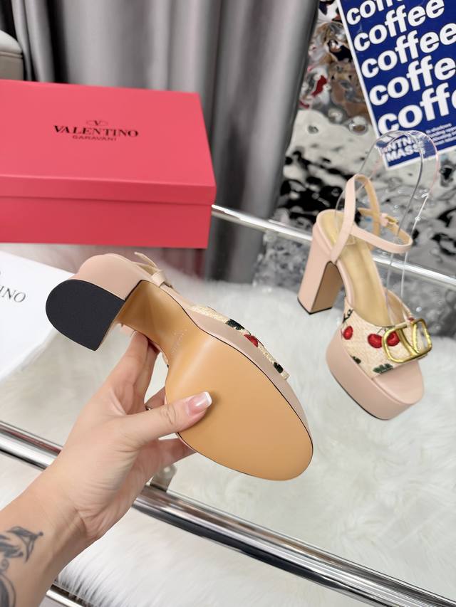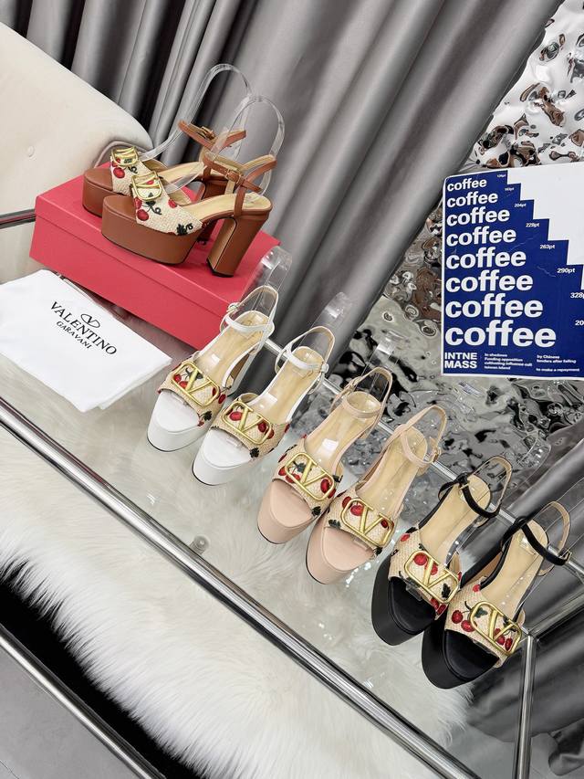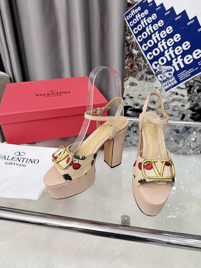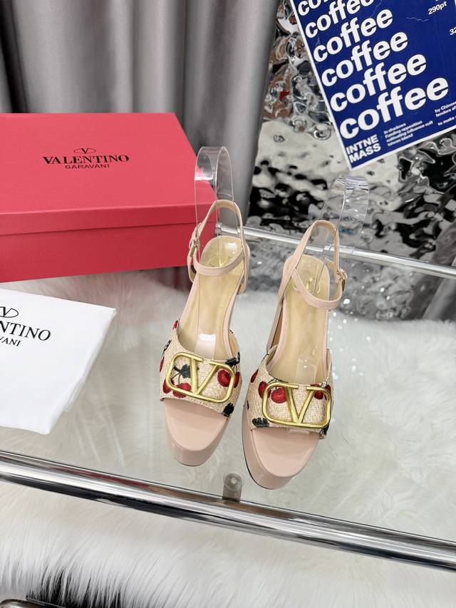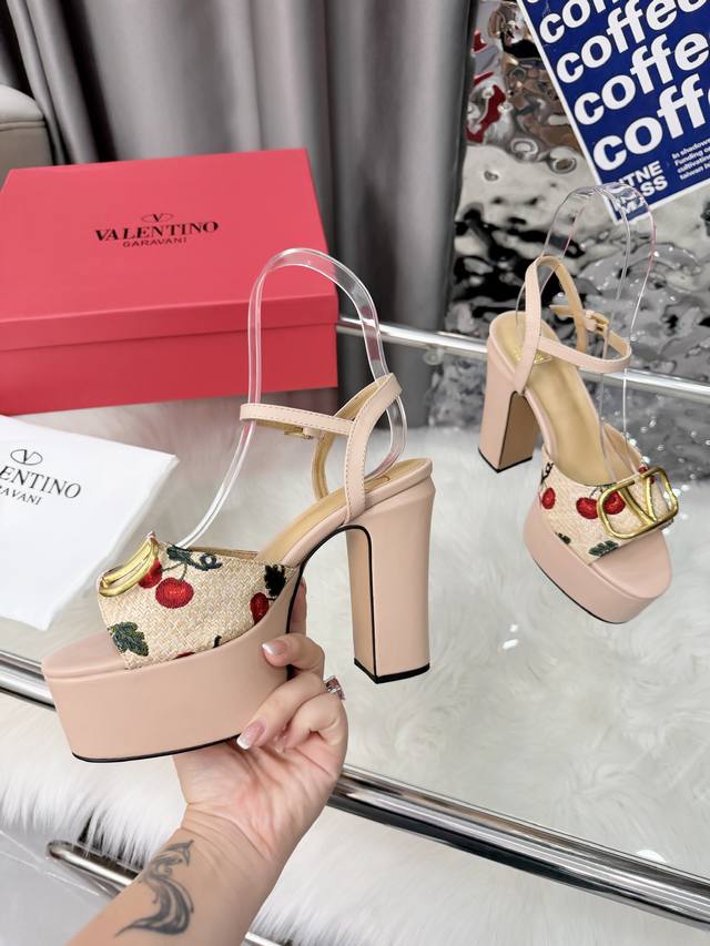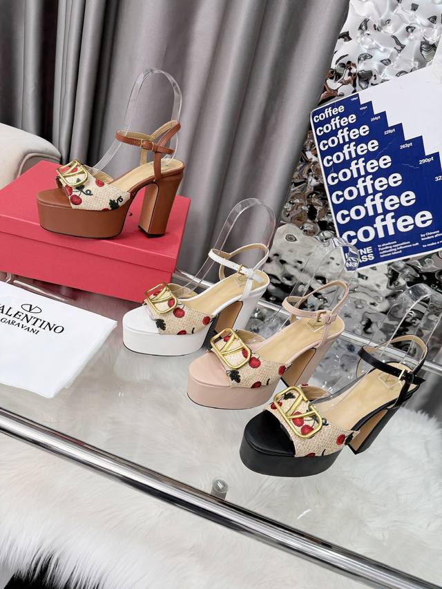 出厂价pp: Valentino华伦天奴凉鞋,设计简约大气,脚感舒适,上脚超美。鞋头特殊编织订诱工艺内里羊皮,跟高12.5厘米,前面水台5厘米,黑色、米白色~杏