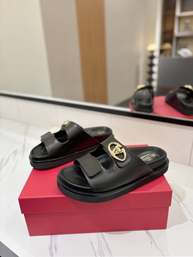 出厂价Pp: Valentino华伦天奴2025Ss专柜推出新款-沙滩凉鞋和拖鞋,原版1:1复刻,全部选用上乘材质,触感柔软,为你的足下生活注入奢华魅力,伴你迈出自信优雅的每一步. 1鞋面:顶级小牛皮 2内里:牛皮 3五金扣1:1复制 4大底:原版开模Ev大底, 时尚轻便,耐磨防滑 大底全部采用真皮沿条围边 5码数:35-39 40.41.42可订做不退不换 专柜全套原版包装!
