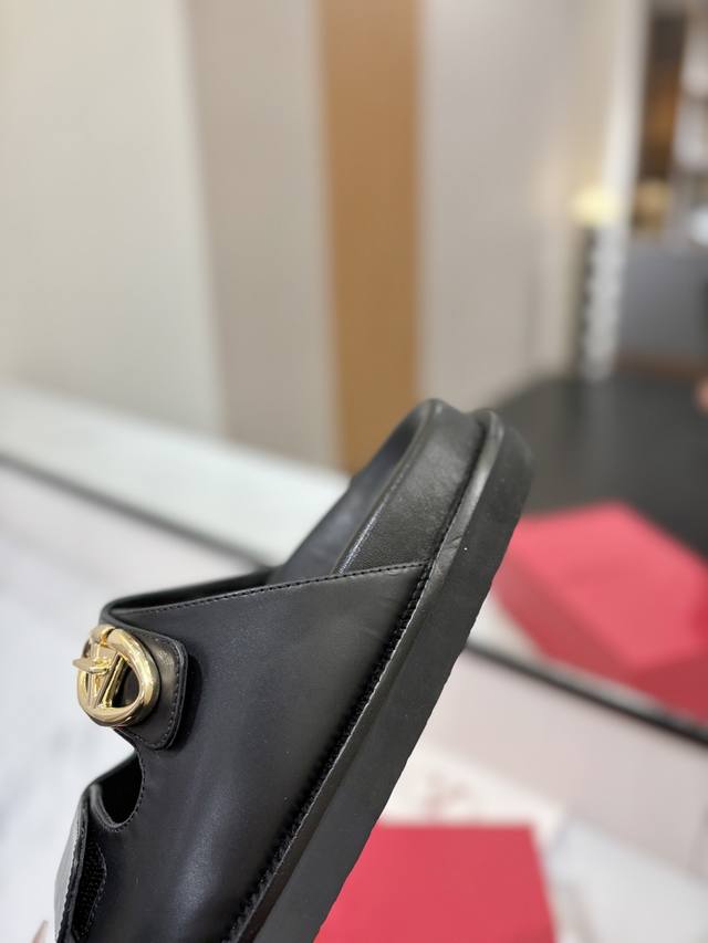 顶级版-真皮底Valentino Garavani Vlogo Cut-Out 25最新经典百搭V扣拖鞋 出厂 ────── 面料:顶级小牛皮 ────── 内