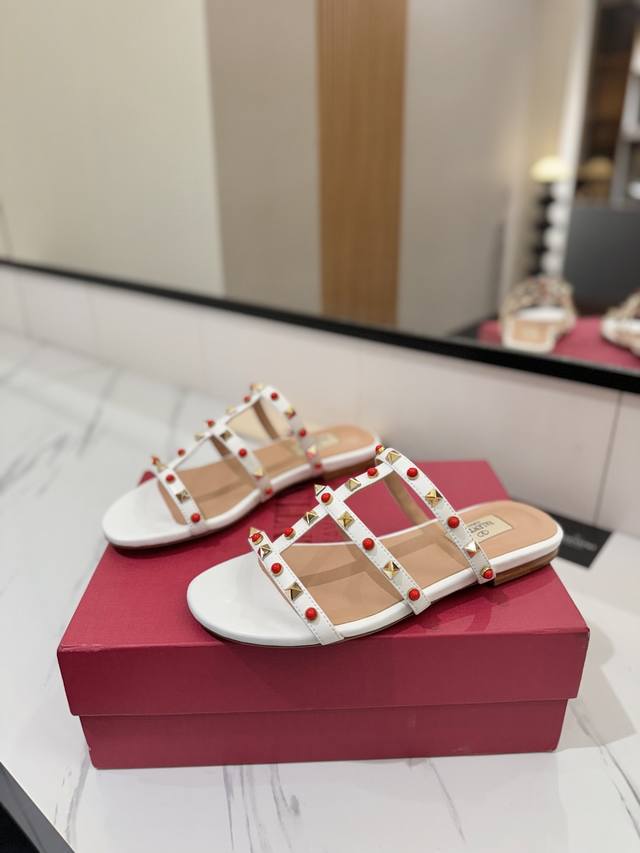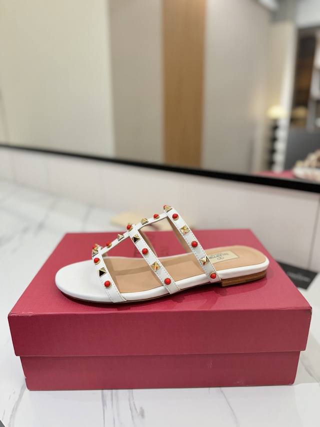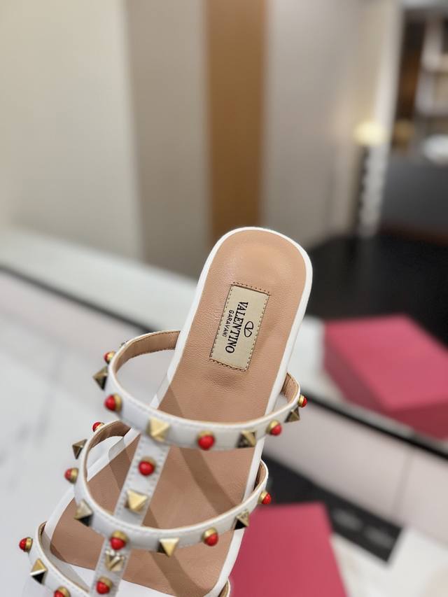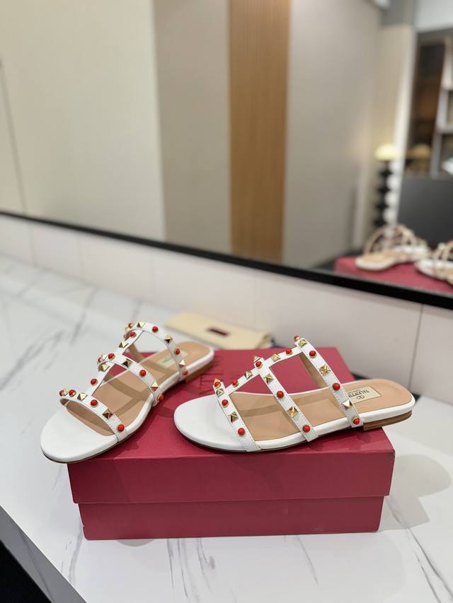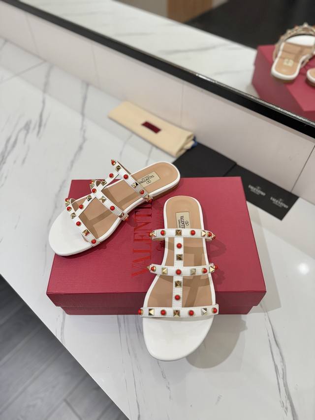 出厂价Pp: Valentino 华伦天奴铆钉 Vt经典拖鞋,顶级复刻!侧身弧线完美,原版开模定制不生锈铆钉 特别有质感的五金衬托出满满的高级感,带给您正品级的脚感!供高端客户首选