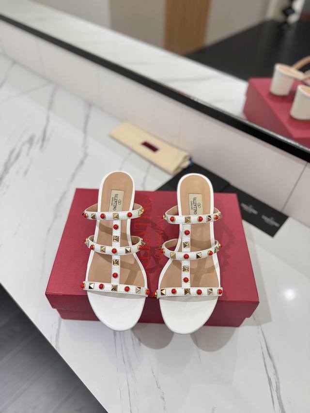 出厂价Pp: Valentino 华伦天奴铆钉 Vt经典6.0拖鞋,顶级复刻!侧身弧线完美,原版开模定制不生锈铆钉 特别有质感的五金衬托出满满的高级感,带给您正品级的脚感!供高端客户首选