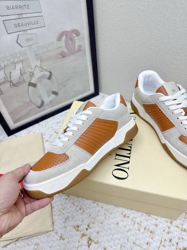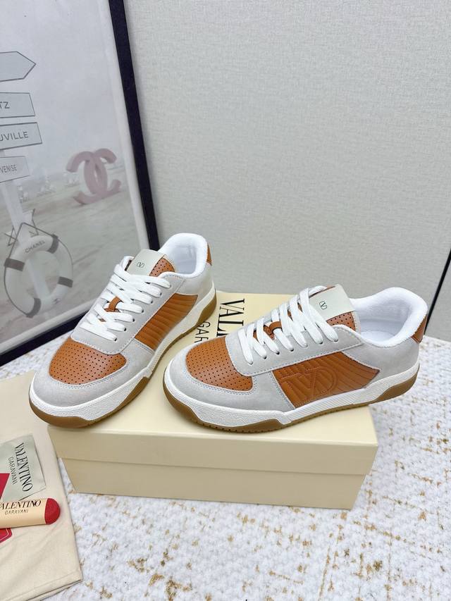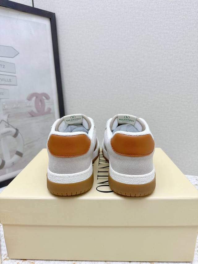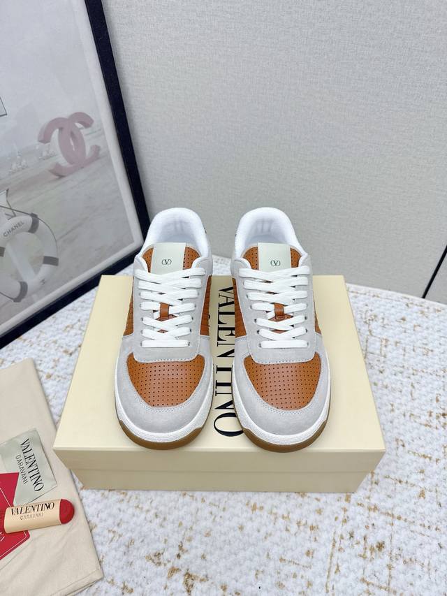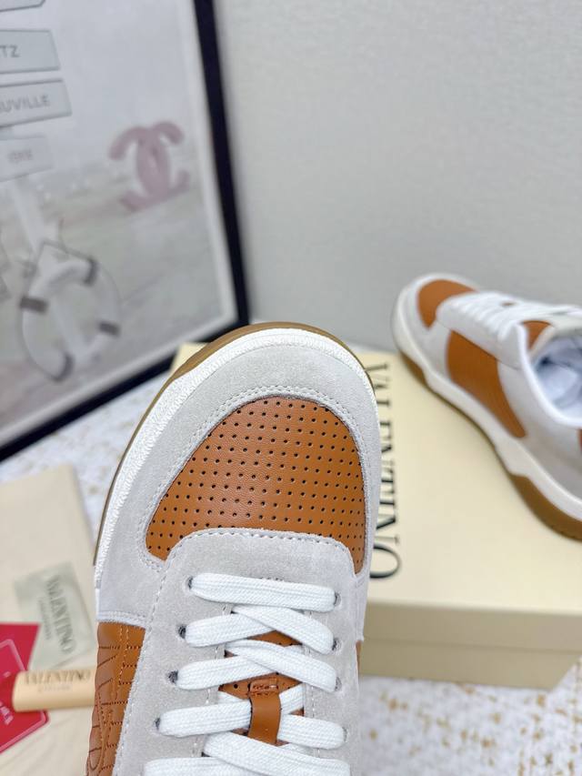 出厂 高版本 DDD Valentino华伦天奴2025爆款休闲运动鞋! DDD 面料:原版定制冲孔+全粒面牛皮 DDD 垫脚:牛皮+V标专用注塑鞋垫 原版1:1 DDD 大底:Tpr+生胶组合耐磨大底 DDD 包装:原版米黄色全套高贵专柜包装 DDD 码数:女35-41,男38-45女装40.41男款45.46定制 DDD