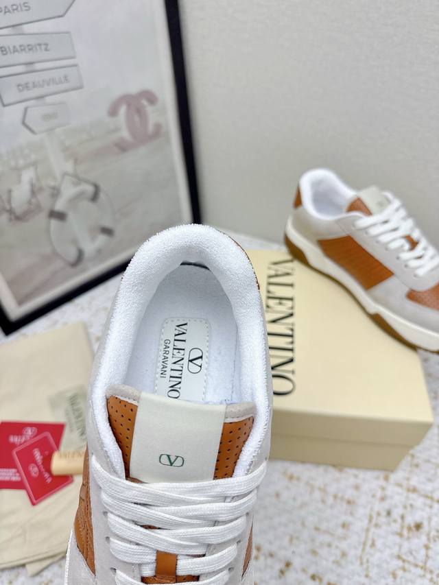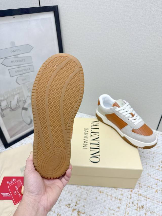 出厂 高版本 Valentino华伦天奴2025爆款休闲运动鞋! 面料:原版定制冲孔+全粒面牛皮 垫脚:牛皮+V标专用注塑鞋垫 原版1:1 大底:Tpr+生胶组