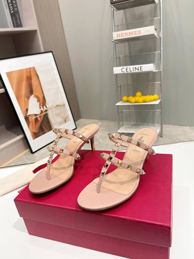顶级版本 华伦天奴 春夏新款 新颜色 女士后空 新一代全立面牛皮 凉鞋 独特的 独有的V家鉚钉设计 衬托出满满的高级感...
