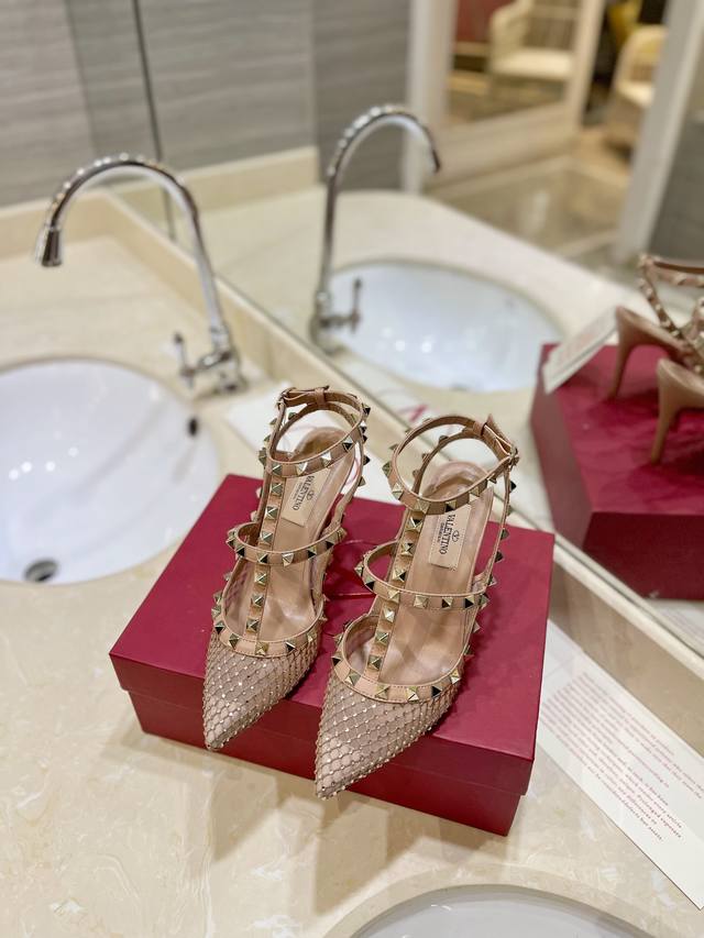 / 华伦天奴 仿水晶装饰网格铆钉高跟鞋最新颜色 从60年代以来一直都是意大利的国宝级品牌。历久弥新,深入人心永不过时。必备单品之一 颜色超多任您挑选原版开模电度铆钉