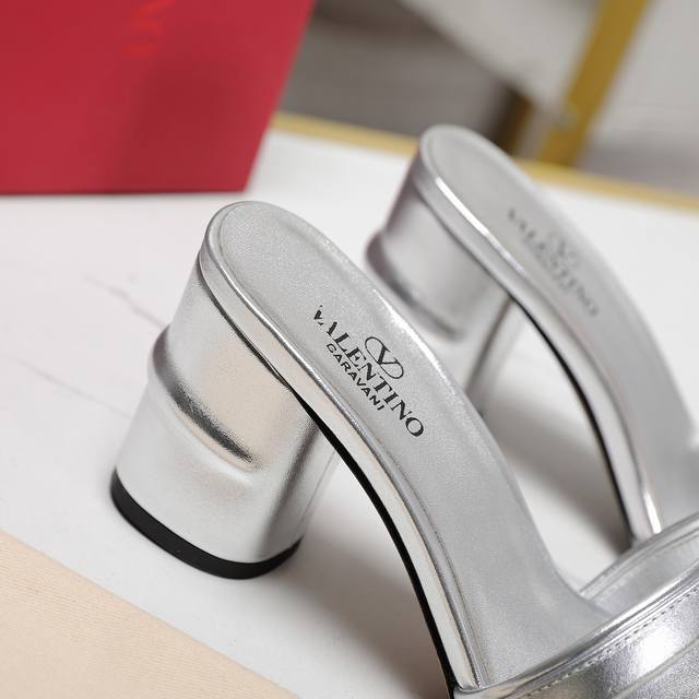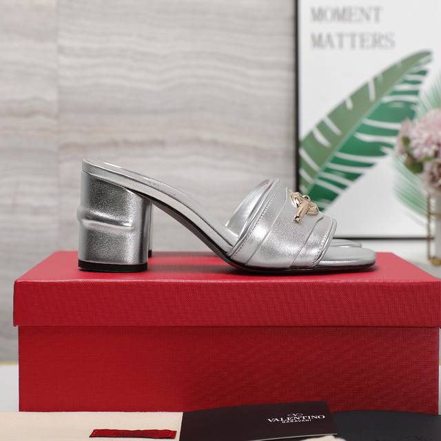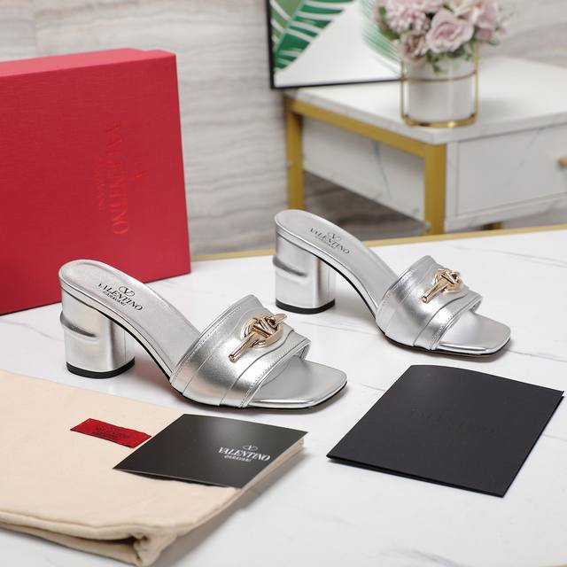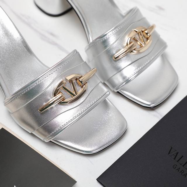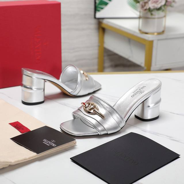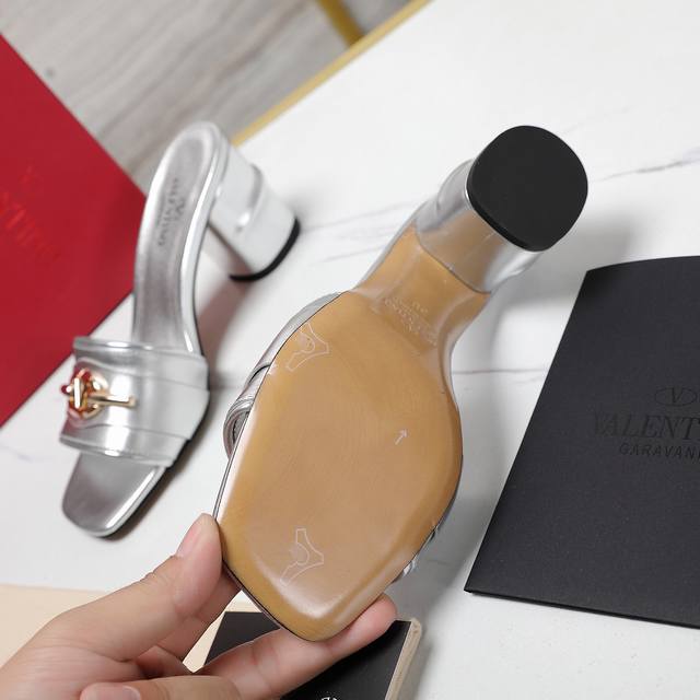 华伦天奴Valentino 最新款Garavanitan-Go牛皮粗跟拖鞋 -饰以Vlogo Signature搭扣 优雅风格,创造不一样的感觉! 它是你鞋柜里不可缺少的单鞋!简约气质款式,市场最高版本
