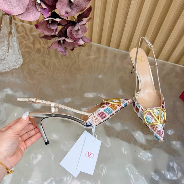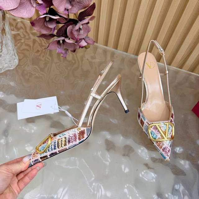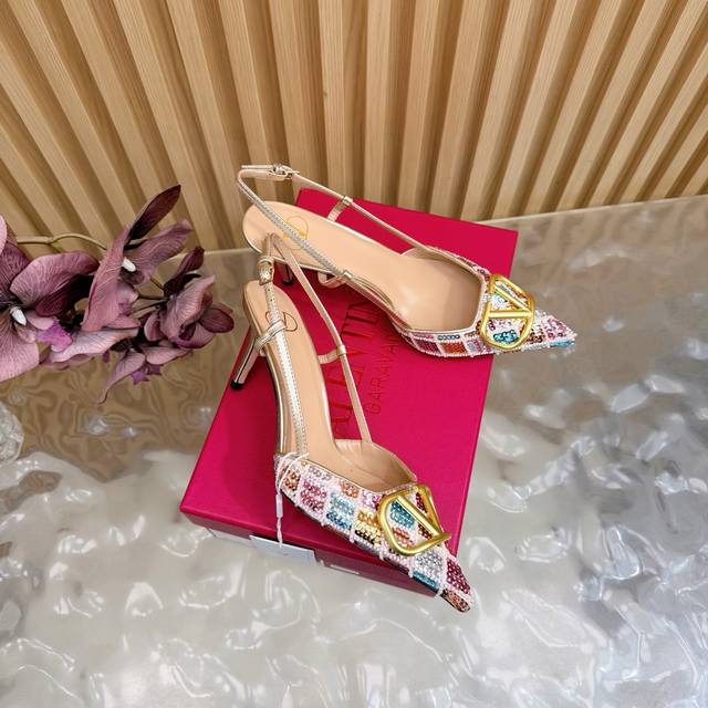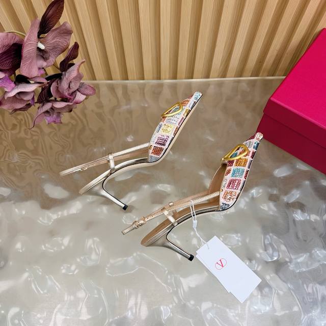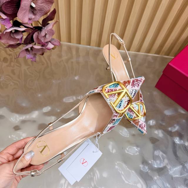 / 原版品质,对版做法 好货不怕迟Valentino2026春夏系列彩钻Vlogo高跟鞋 凉鞋 尖头细跟设计,鞋面彩色亮片+水晶点缀,Blingbling超吸睛金色