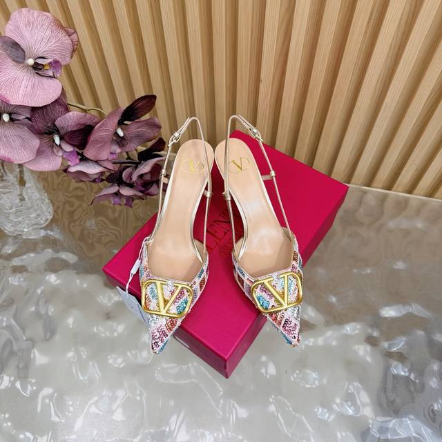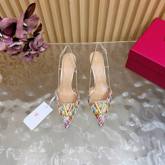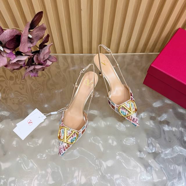 原版品质,对版做法 Ddd 好货不怕迟Valentino2026春夏系列彩钻Vlogo高跟鞋 凉鞋 DDD 尖头细跟设计,鞋面彩色亮片+水晶点缀,Blingbling超吸睛金色Vlogo金属扣,品牌感满满,8.5Cm跟高拉长腿部线条,优雅又显气场。 DDD 后绊带设计,穿着更稳,适合晚宴,派对等正式场合,也能为日常穿搭加分,是实用又奢华的时尚单品 DDD Size :35-43 40、41、42、43订做 DDD