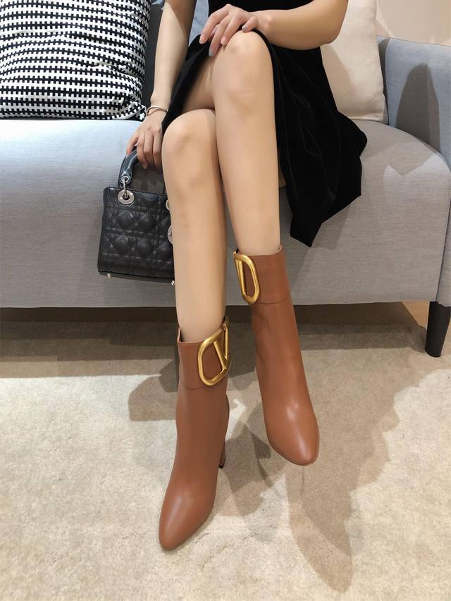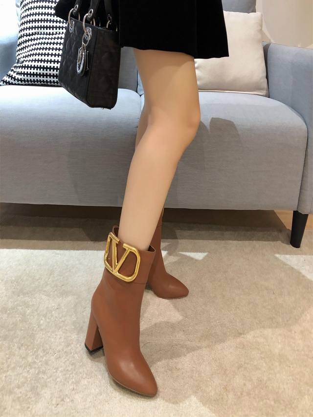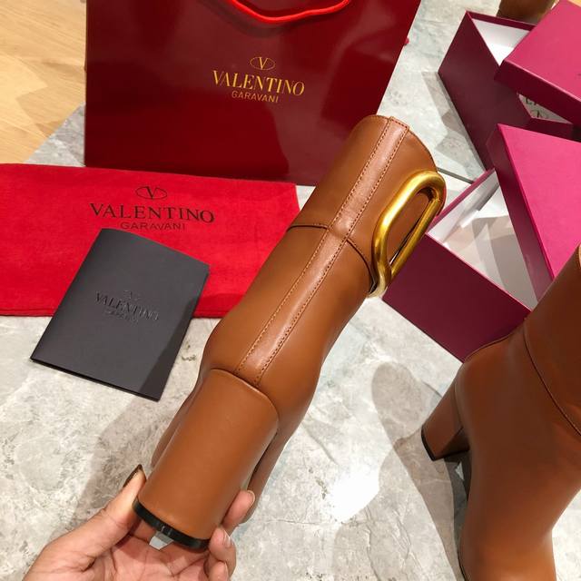 / 橡胶底 真皮底 Valentino 华伦天奴秋冬时装女靴:上脚舒适百搭显大长腿, 面料:进口头层牛皮配超级大V扣内里垫脚全部真皮,防滑耐磨橡胶大底 和意大利真皮