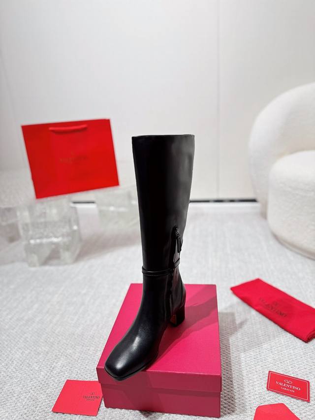 长靴: Valentino华伦天奴高版本粗跟镂空V标 不过膝 机车靴!原版复刻. 高端大气上档次!上脚舒适奢华. 材质:鞋面全牛皮. 内里全牛皮. 进口高密度意大利真皮大底. 配置专柜原版包装. 跟高:4.5Cm Size :35一40 41定做 DDD