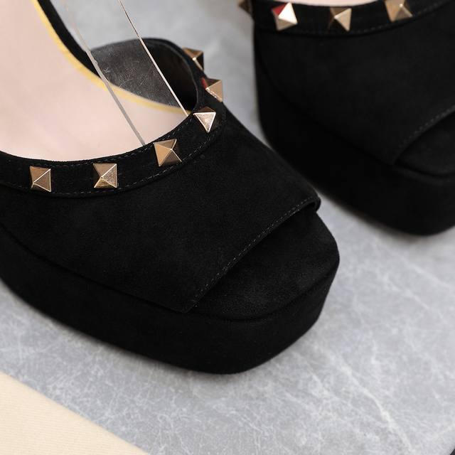 Ss最新金属铆钉坡跟高水台凉鞋!原版购入1:1顶级复刻!精致的楦型设计,侧身弧线完美!