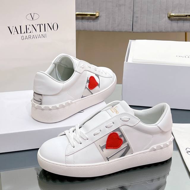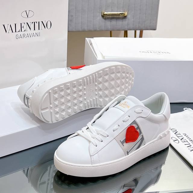 顶级版本 Valentino Rockstud Untitled 华伦天奴 七夕爱心情侣款运动休闲鞋、板鞋、铆钉鞋。 Alentino Garavani Roc