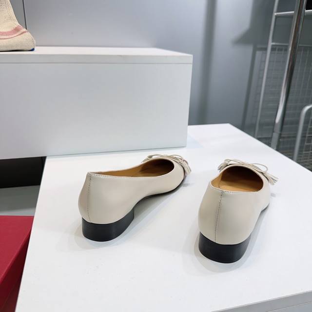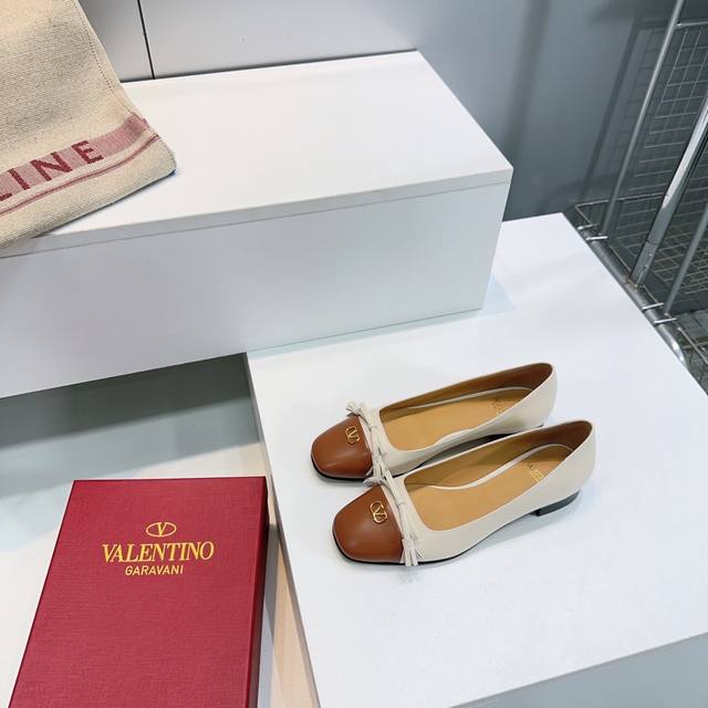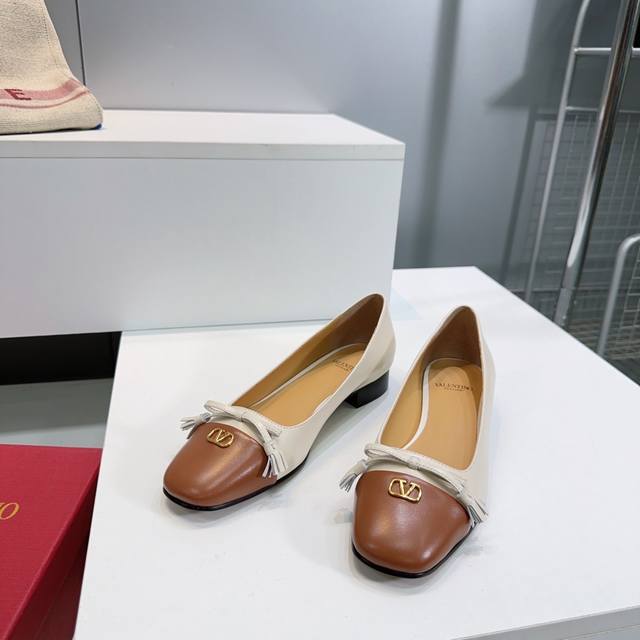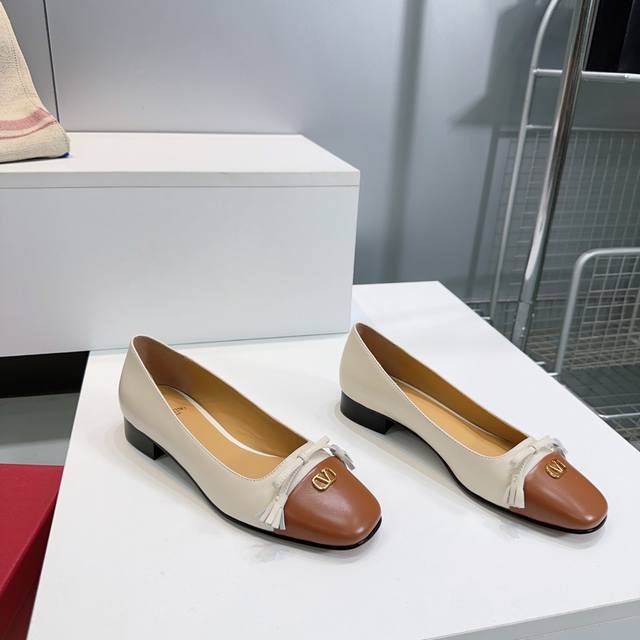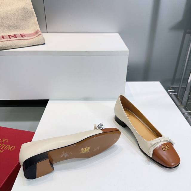 高品质出厂 !顶级品质Valentino华伦天奴2025秋冬专柜最新蝴蝶结粗跟平底小方头时装单鞋!经典小V扣配上优雅可爱撞色蝴蝶结!