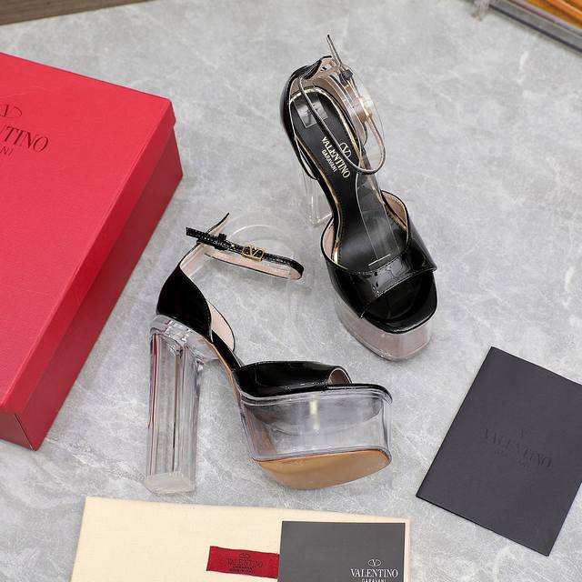款新华伦天奴恨天高水防台皮漆高跟鞋