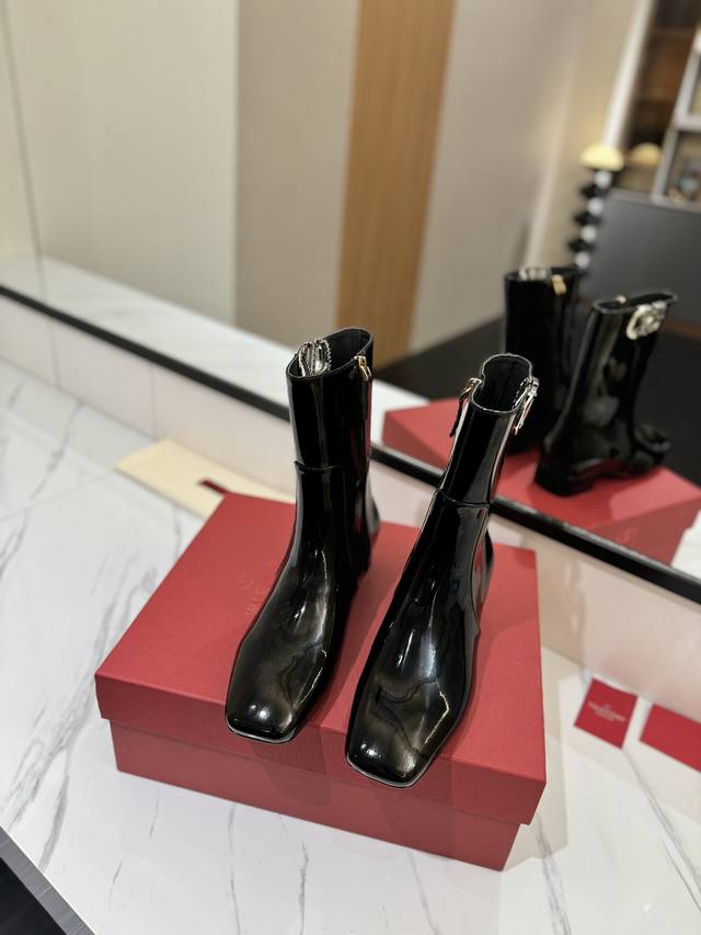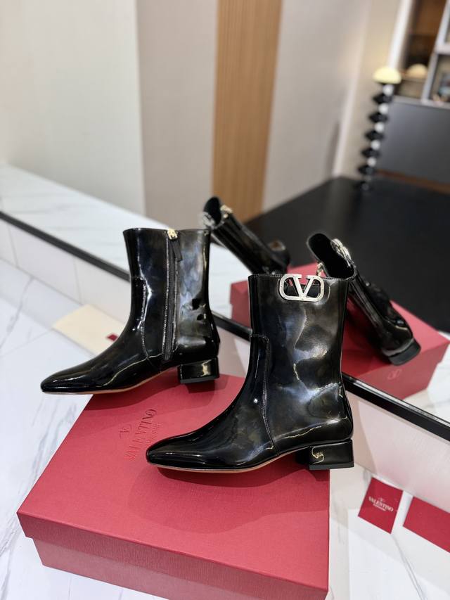 P出厂价Pp: Valentino Garavanivlogo Type Rosso红V标志靴子 -钯金色调Vlogo Type镂空装饰 -侧面拉链开合 -V专柜最新款 顶级版本绝对史上最强货 欢迎对比大底采用意大利进口真皮大底,舒适好穿楦型与专柜一致,优雅气质、 面料 进口镜面牛漆 内里 牛皮里 牛皮垫脚 大底 意大利真皮底 跟高 3Cm 标准码34-42 34-41-42定做 不退换
