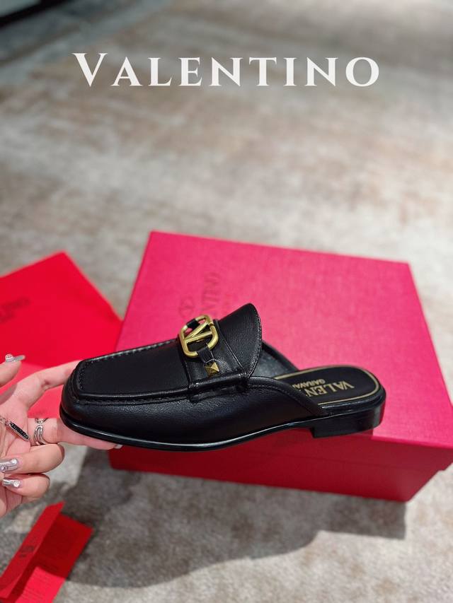 华伦天奴 Valentino P340。代购级别!经典铆钉拖鞋!面料:牛皮 克色 ,荔枝纹 克色,米白,裸色,古铜金 ,漆皮...