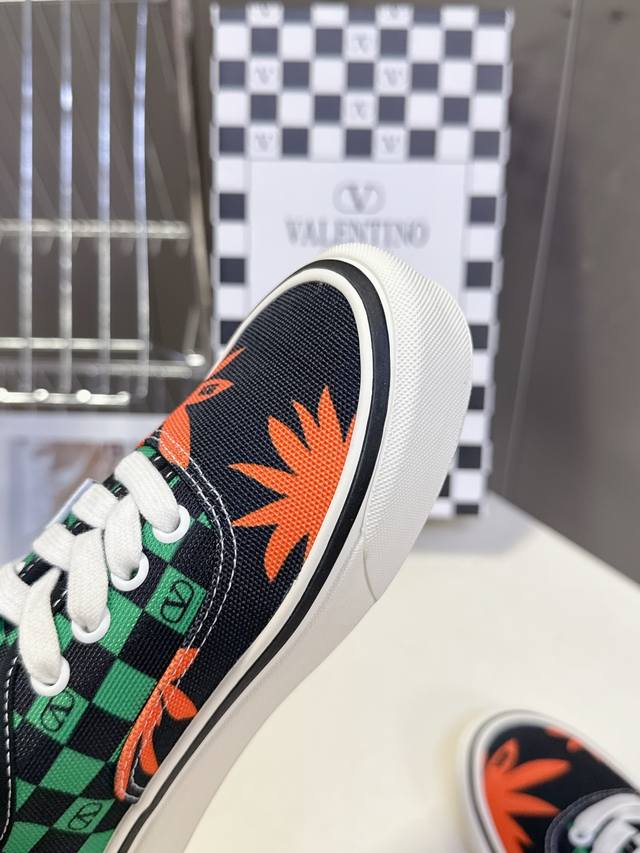 Valentino华伦天奴Vans最新联名款情侣休闲鞋 帆布鞋 超多明星时尚博主种草 整体设计沿用万斯鞋型棋盘格图案华伦天奴经典Logo点缀 满满的高级感 街头