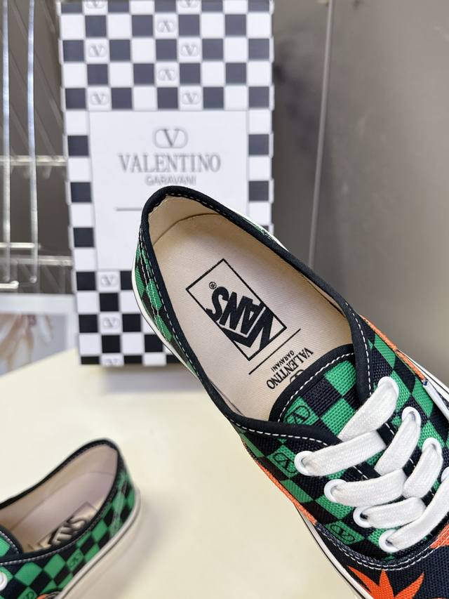 / Valentino华伦天奴Vans最新联名款情侣休闲鞋 帆布鞋 超多明星时尚博主种草 整体设计沿用万斯鞋型棋盘格图案华伦天奴经典Logo点缀 满满的高级感 街头