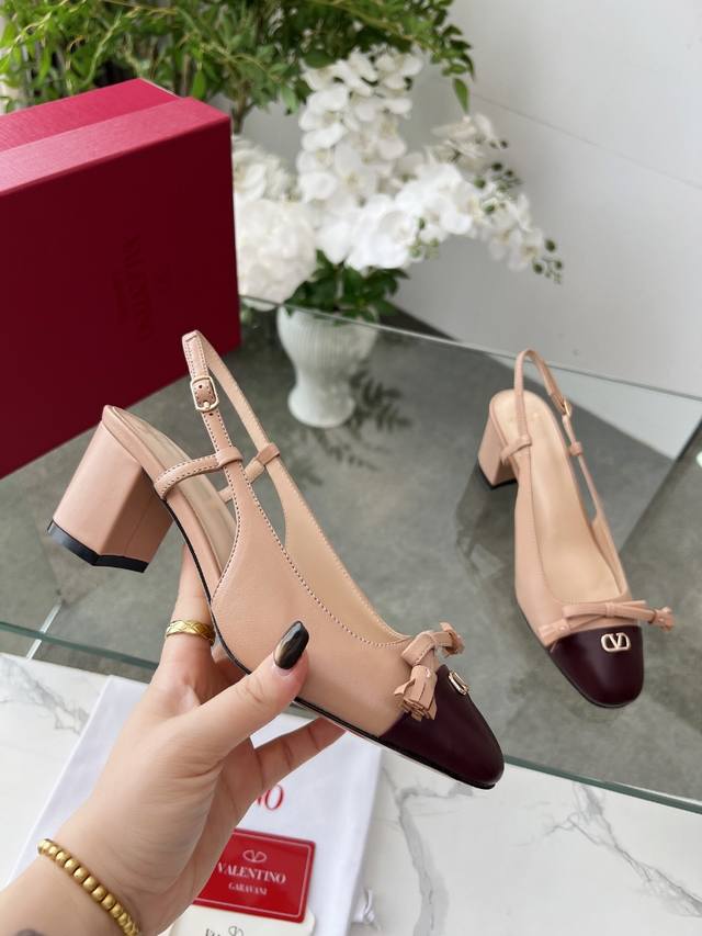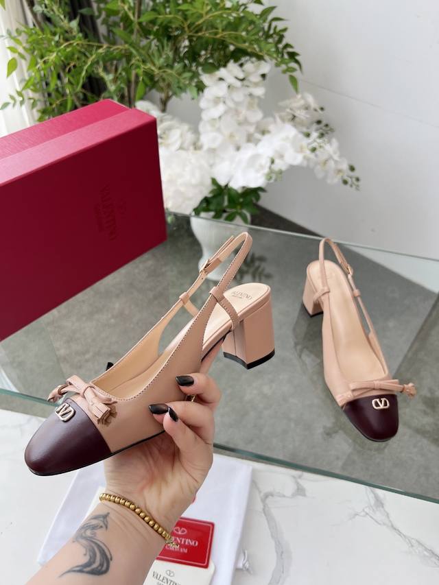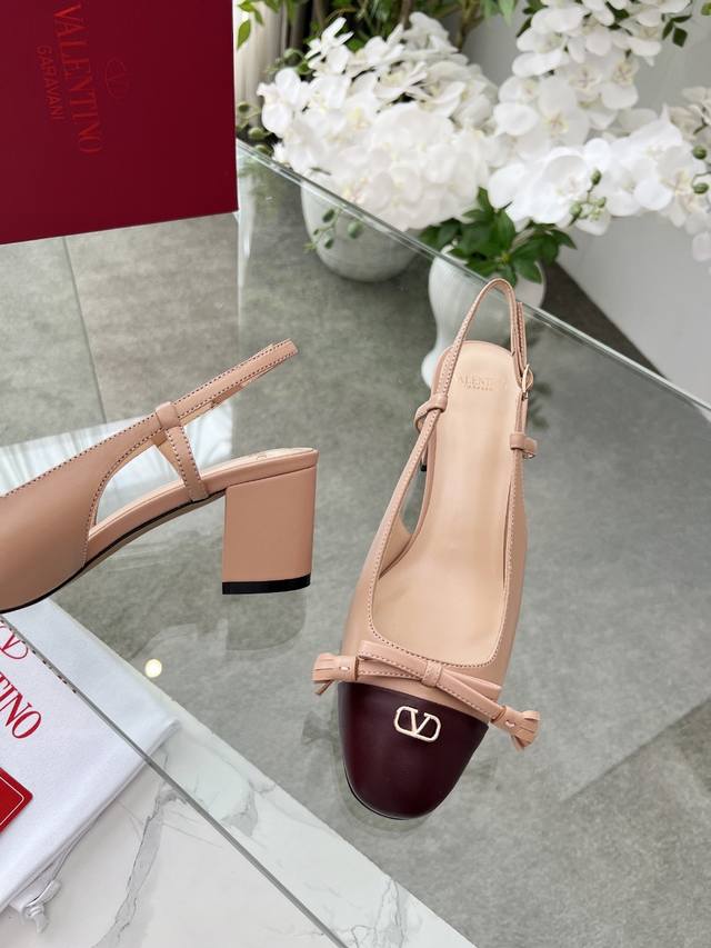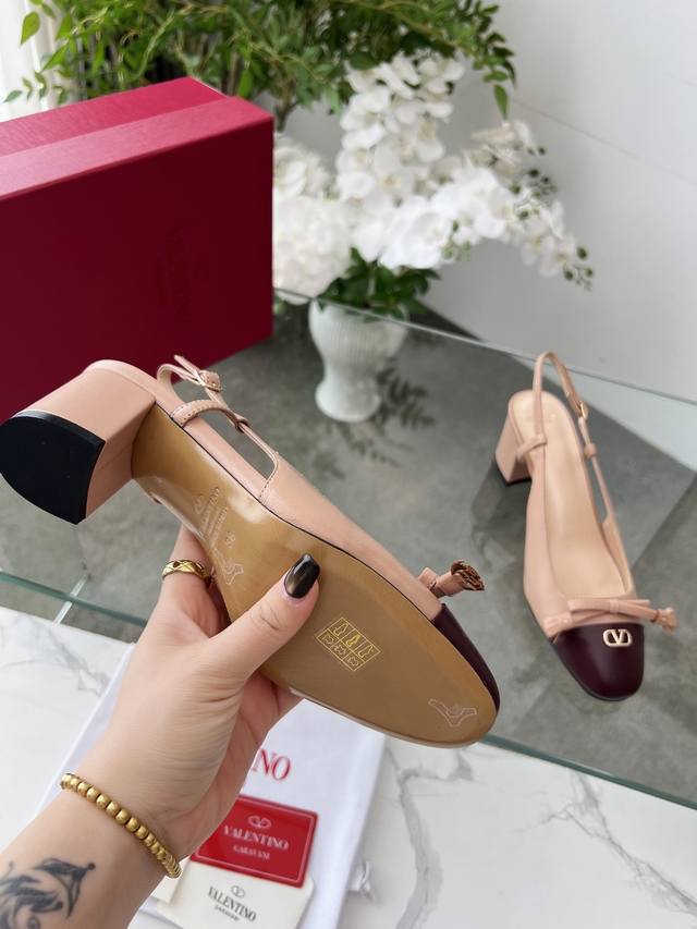 顶级版-真皮底Valentino 25最新经典百搭V扣小矮跟后空拖鞋 出厂 ────── 面料:顶级小牛皮 ──────...