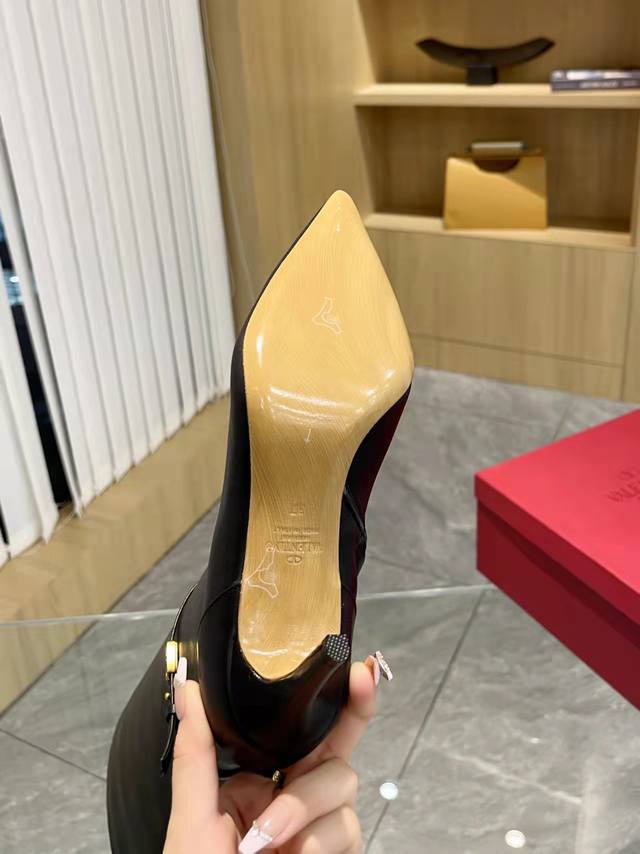出厂价Pp: Valentino 华伦天奴铆钉 Vt经典尖头平底单鞋,顶级复刻!侧身弧线完美,原版开模定制不生锈铆钉...