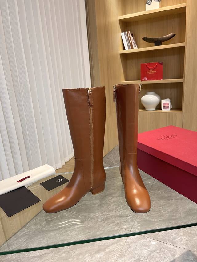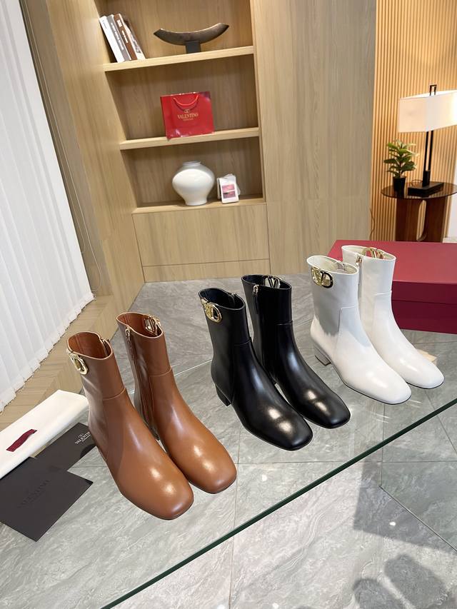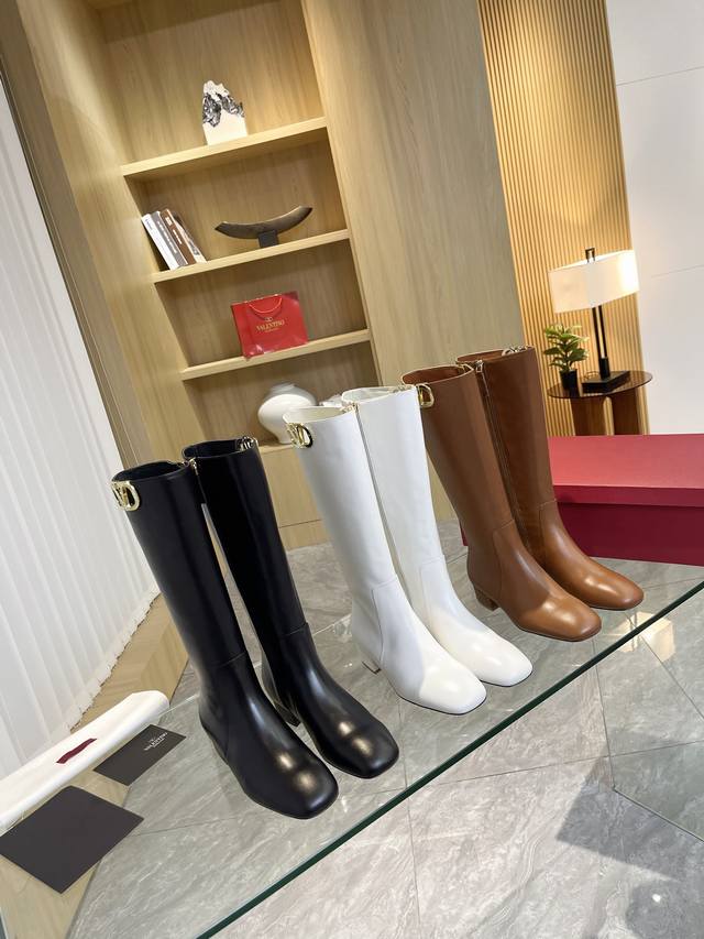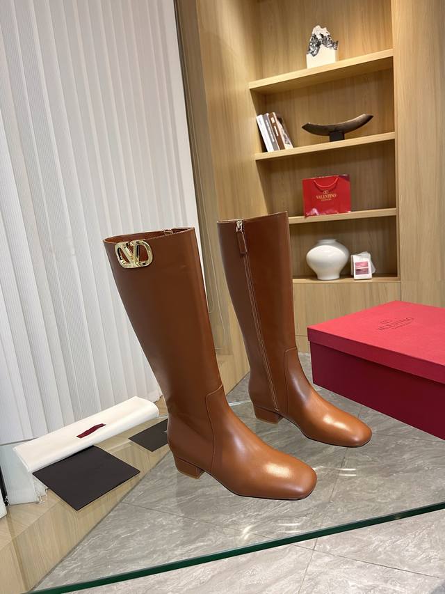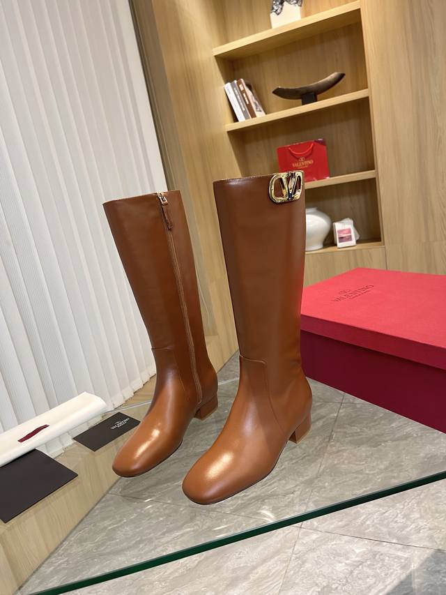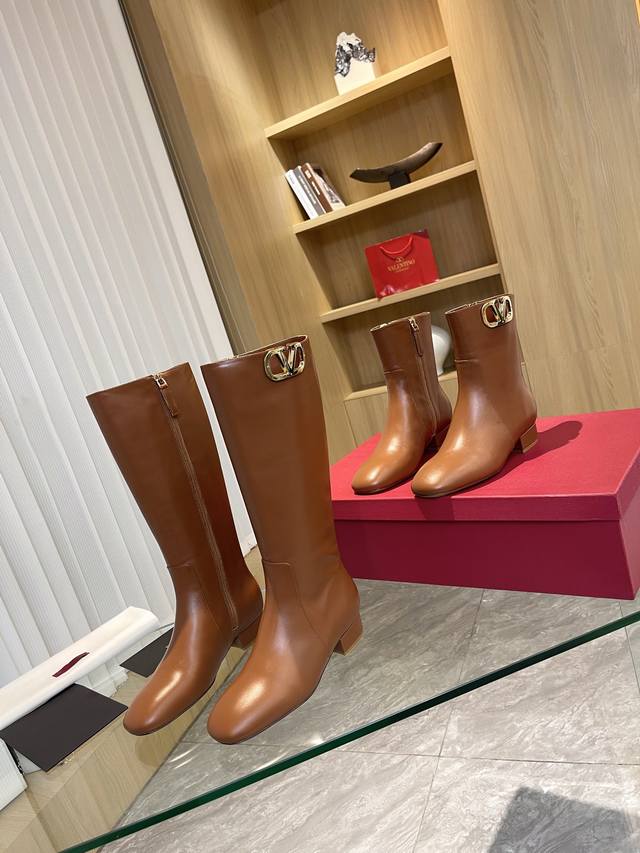 Valentino 华伦天奴秋冬 大V扣 时装女靴:上脚舒适百搭显大长腿! 面料:进口头层牛皮靴筒 浅金色大V扣 装饰配件!配内要拉链款内里垫脚全部高端羊皮!