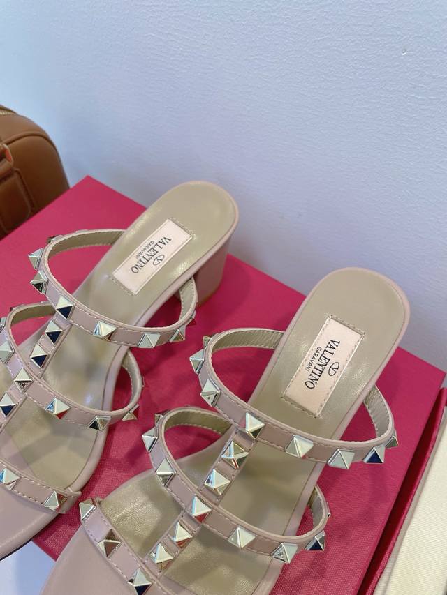 valentino 华伦天奴 舒适度一绝的粗跟凉鞋 夏天的鞋柜里一定不能少的凉鞋 时尚经典铆钉元素 6Cm粗跟穿起来真的太虚浮了 逛街都豪无压力 让你的每一步都