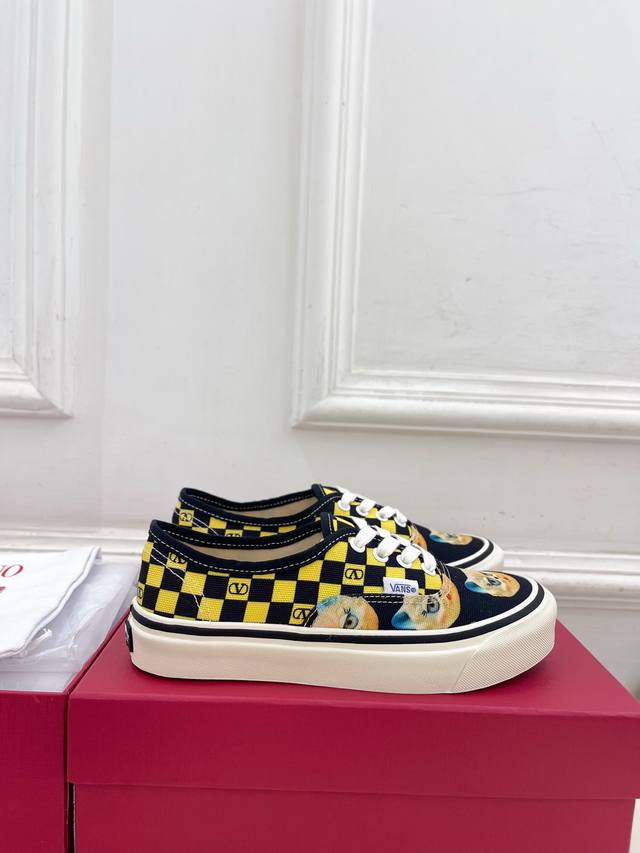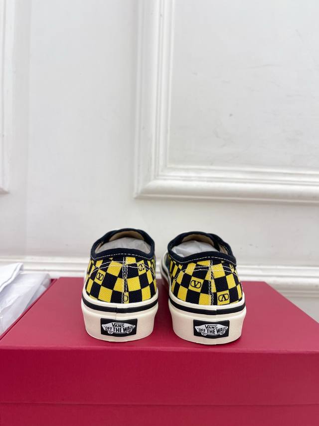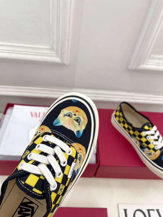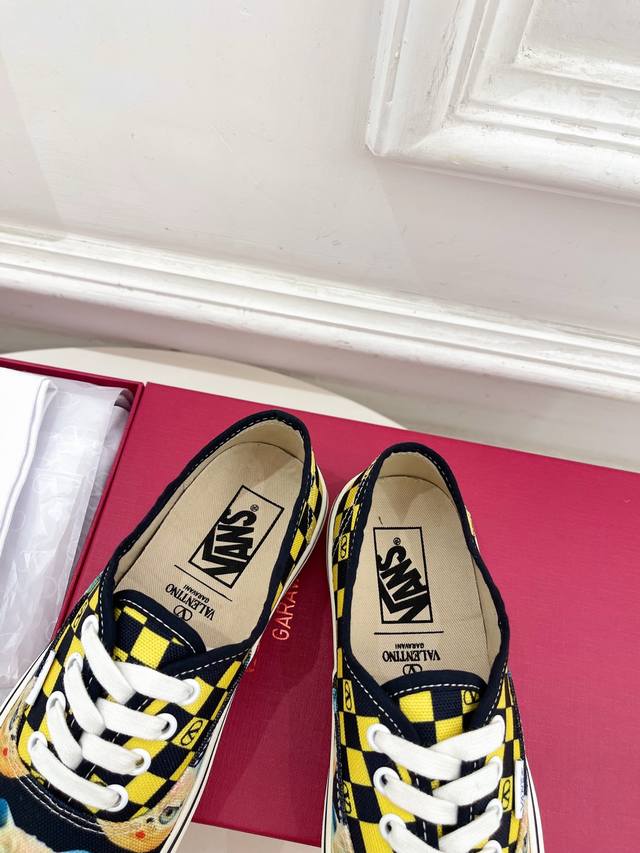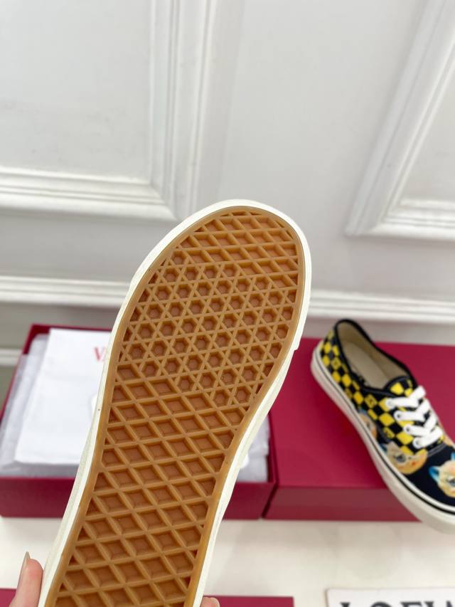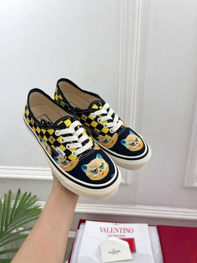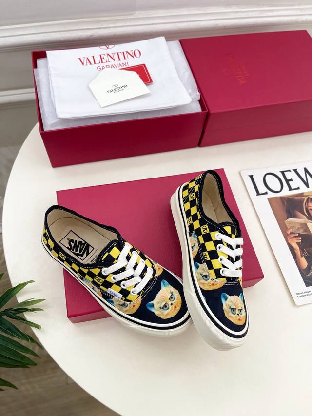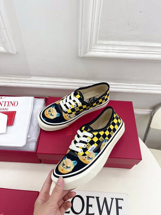 Valentino 华伦天奴 2025秋冬新品 华伦天奴与 Vans 联名情侣运动鞋 上新 Valentino Garavani 的经典“Roman Stud”系列以全新的诠释方式首发!最新金色V扣元素 满满的高级感 !Bs时尚度爆棚~ 鞋面:原版高定制帆布棋盘格猫咪印花 内里:进口定制帆布 大底:原版开模定制防滑大底 码数:女35-40 41.42.定做不退换 男39-44 45.46.定制不退换 价格P:
