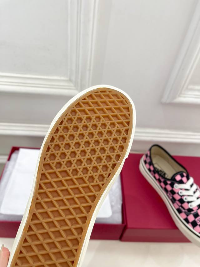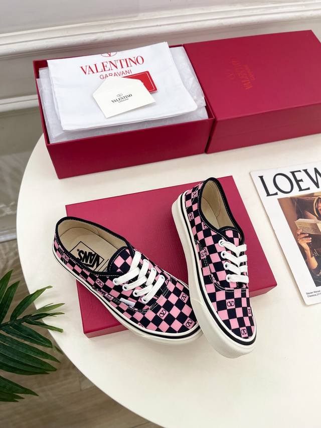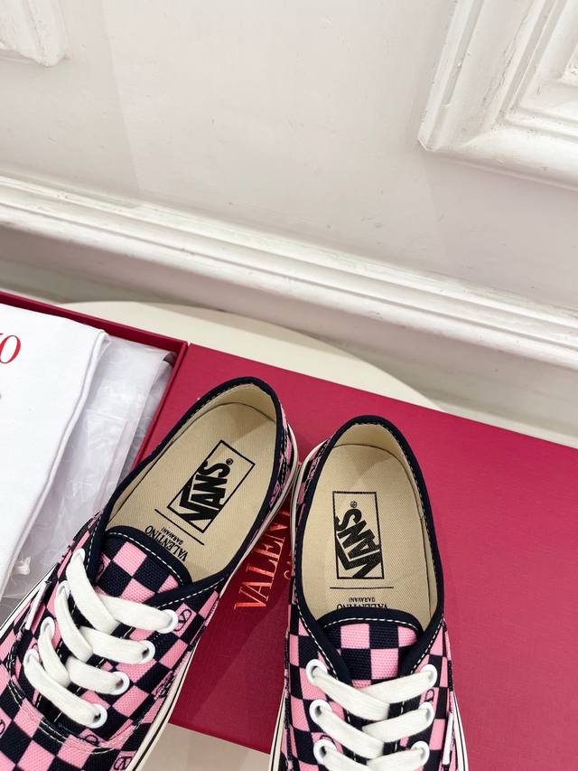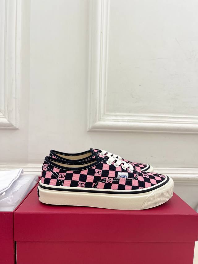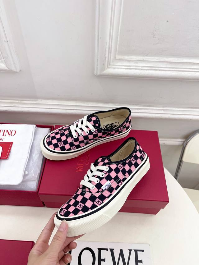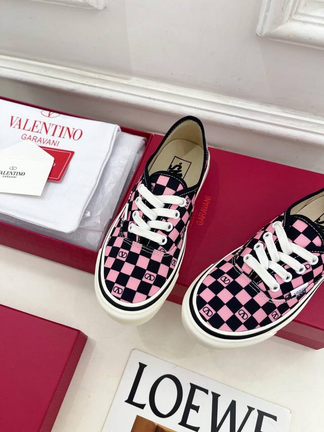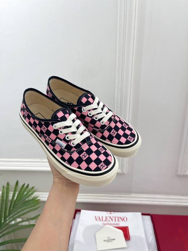 Valentino 华伦天奴 2025秋冬新品 华伦天奴与 Vans 联名情侣运动鞋 上新 Valentino Garavani 的经典“Roman Stud”系列以全新的诠释方式首发!最新金色V扣元素 满满的高级感 !Bs时尚度爆棚~ 鞋面:原版高定制帆布棋盘格印花 内里:进口定制帆布 大底:原版开模定制防滑大底 码数:女35-40 41.42.定做不退换 男39-44 45.46.定制不退换 价格P: