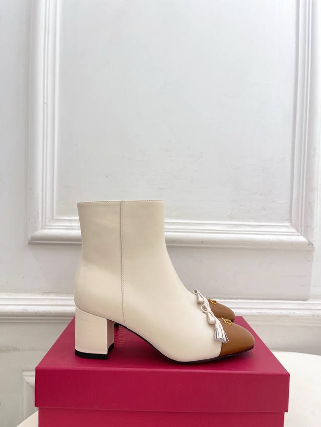 Valentino 华伦天奴 2025秋冬新品Valet Du Roi 双色流苏蝴蝶结短靴 上新 Valentino Garavani 的经典“Roman St