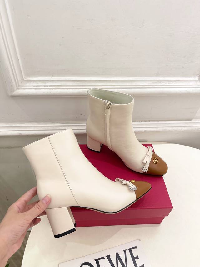 Valentino 华伦天奴 2025秋冬新品Valet Du Roi 双色流苏蝴蝶结短靴 上新 Valentino Garavani 的经典“Roman Stud”系列以全新的诠释方式首发!最新金色V扣元素 满满的高级感 !Bs时尚度爆棚~ 鞋面:原版高定制山羊皮 内里:进口山羊皮里 大底:意大利进口真皮大底 跟高:6Cm 码数:35-39 40.41.42定做不退换 价格P: