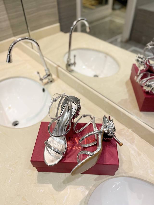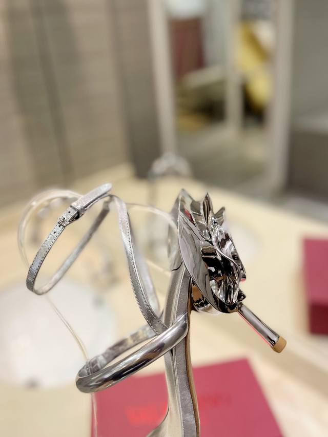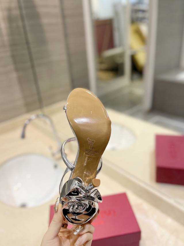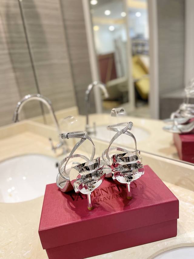 Valentino 新款 最新玫瑰花跟 突破设计风格 无法描述的美丽材质面料牛皮 内里采用高级柔软羊皮舒适驾驭。鞋底意大利真皮鞋底 鞋跟10Cm 码数35-39