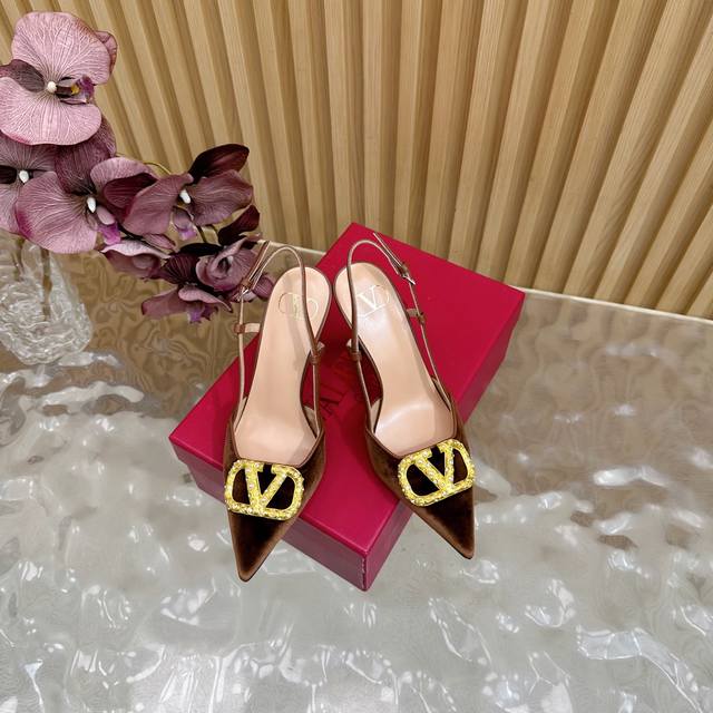 Valentino25Ss 华伦天奴 专柜新品钻V扣粗跟凉鞋 独家开模V扣 5个高度,下单要备注 网红街拍都爱搭配的腔调单品哦~ 跟着时尚达人的步伐来走准没错!搭配上简单或时尚款的衣服穿,鞋面镂空设计搭配V家经典铆钉点缀,高端大气又显腿白,细节和面料的搭配都让整体看起来很有质感~ 1进口原版丝绒 2原版定羊皮内里 3原版V家开模抗氧化铆钉 4意大利进口真皮底 5码数:35-42 40、41、42定制 6跟高:平底 4Cm 6.5Cm 8Cm 10Cm 下单备注跟高