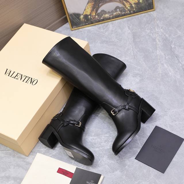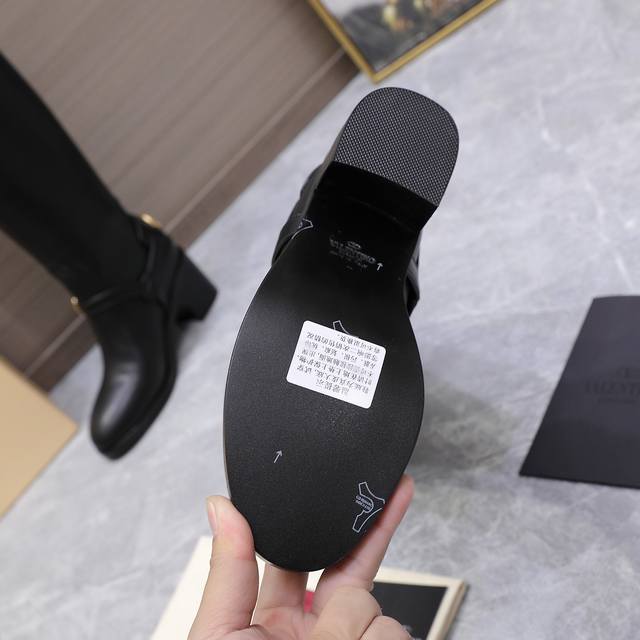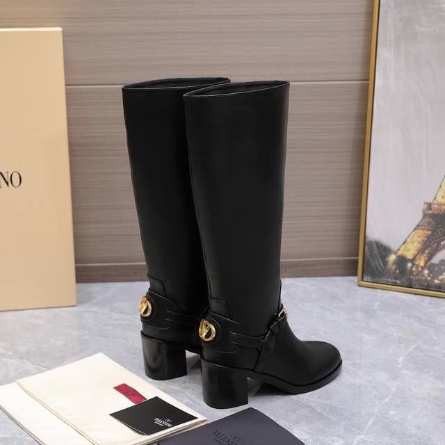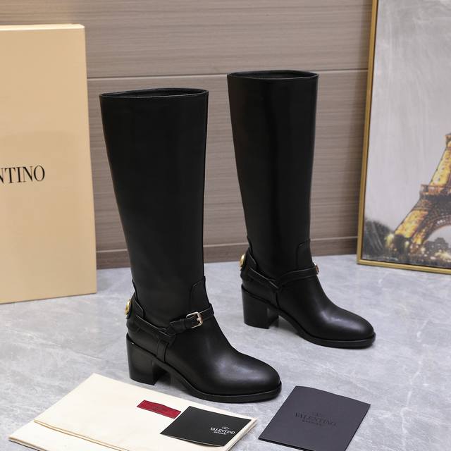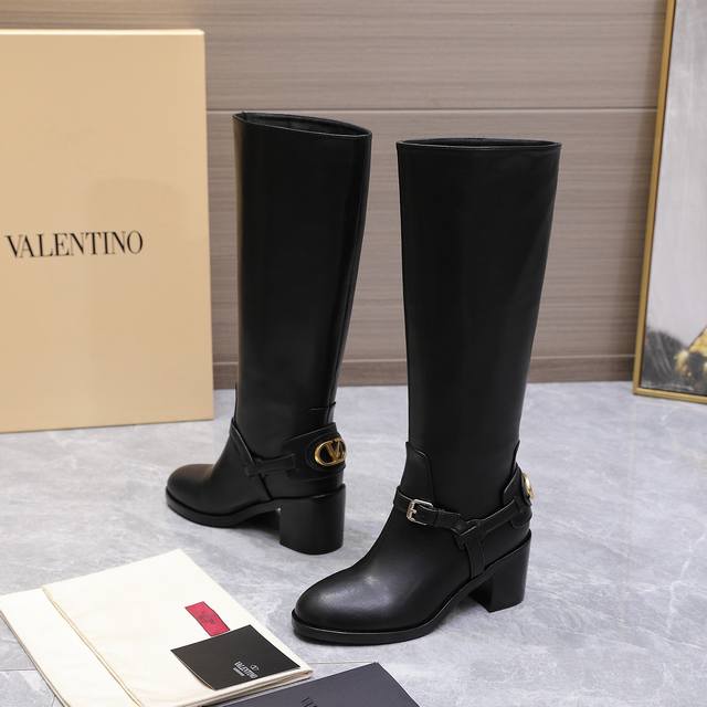 / 代购级 25Ss 秋冬新款 华伦天奴Valentino 圆头 V扣骑士长靴 华伦天奴专柜最新款 顶级版本 绝对史上最强货 欢迎对比 舒适好穿 楦型与专柜一致,优