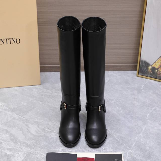 代购级 25Ss 秋冬新款 华伦天奴Valentino 圆头 V扣骑士长靴 华伦天奴专柜最新款 顶级版本 绝对史上最强货 欢迎对比 舒适好穿 楦型与专柜一致,优