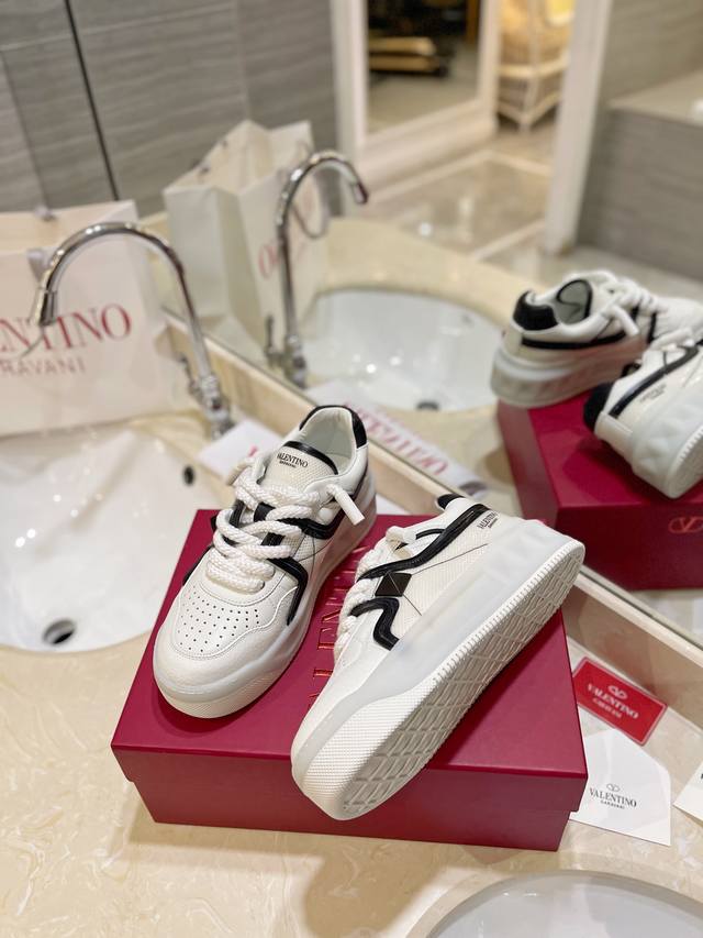 出厂价Pp 独家厚底粗鞋带最高端 Valentino华伦天奴 厚底粗鞋带爆款休闲鞋!张艺兴 关晓彤众多网红明星同款 代言引领潮流!!面料:原版定制全粒面牛皮内里:原版1:1内里专用牛皮垫脚:牛皮+V标专用注塑鞋垫 原版1:1 大底:Tpr耐磨大底包装:原版烫金字母全套高贵专柜包装码数:女35-41,男38-45男款46可定制