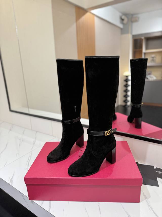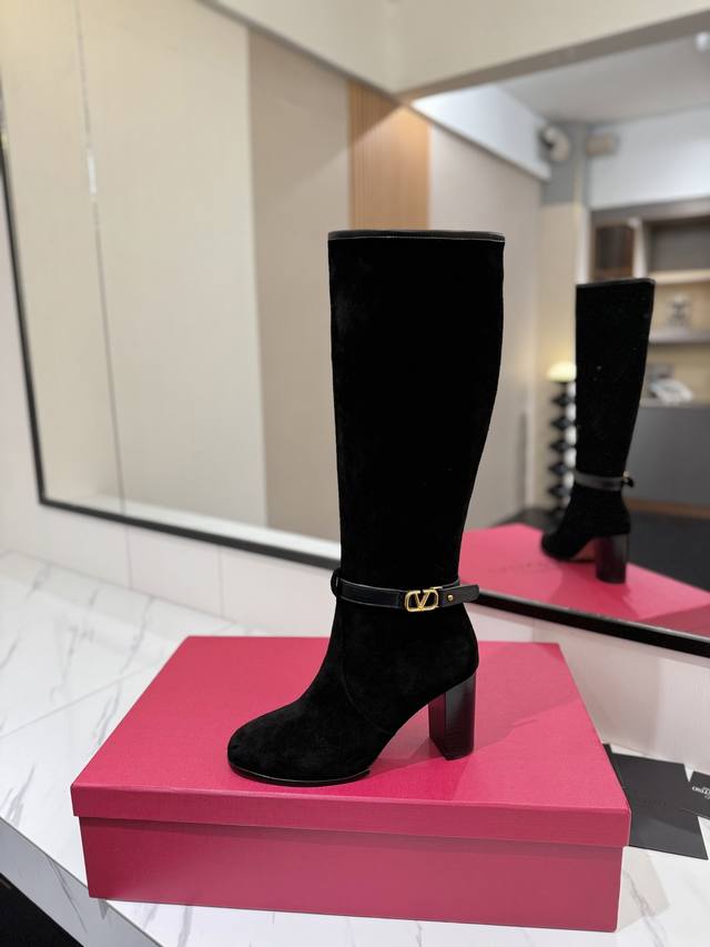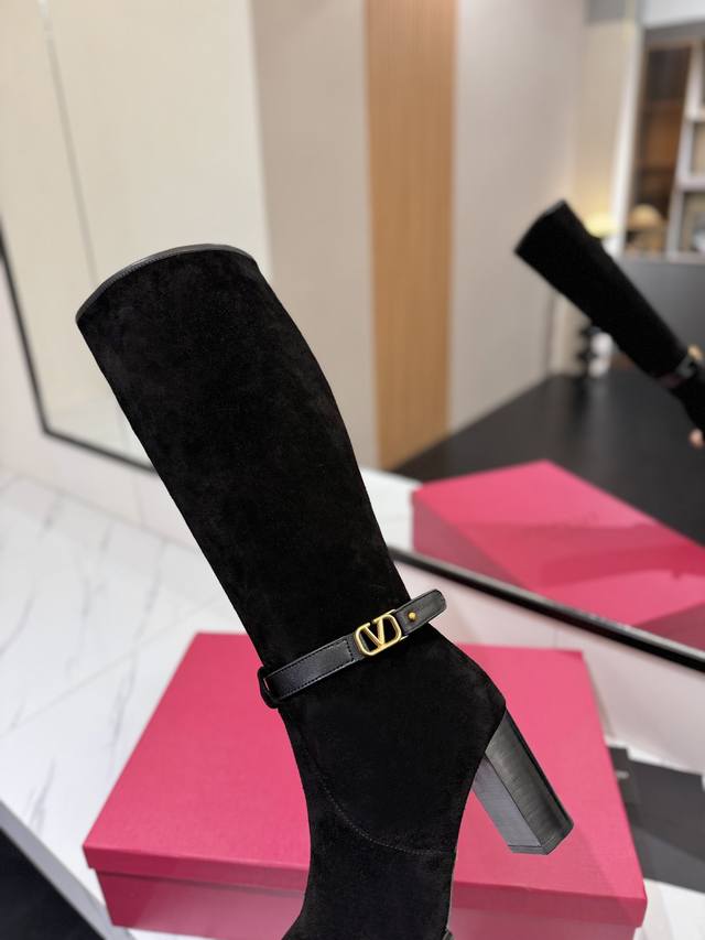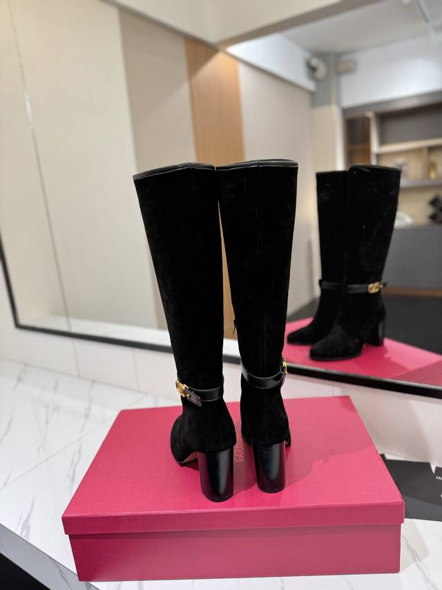 / 出厂价Ppp: 女装女鞋 运动原单 新款华伦天奴高靴Valentino Garavani Vlogo Signature 小牛皮靴 -小牛皮饰带配以复古黄铜做旧