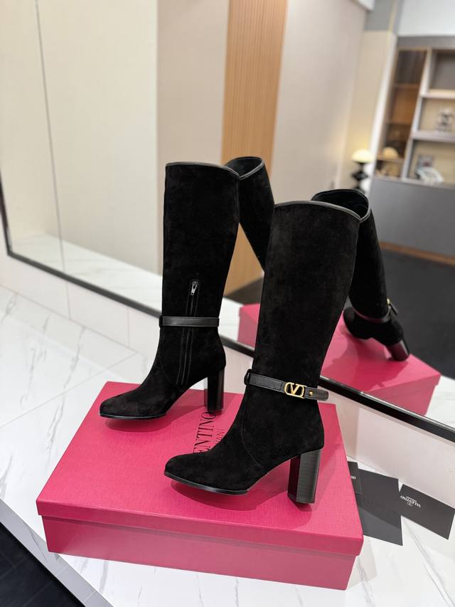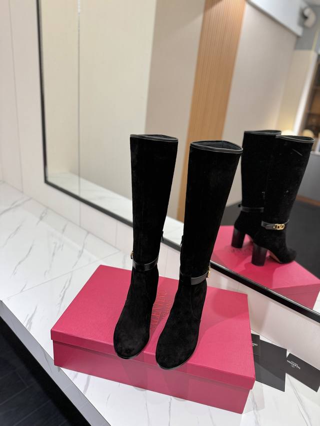 出厂价Ppp: 女装女鞋 运动原单 新款华伦天奴高靴Valentino Garavani Vlogo Signature 小牛皮靴 -小牛皮饰带配以复古黄铜做旧