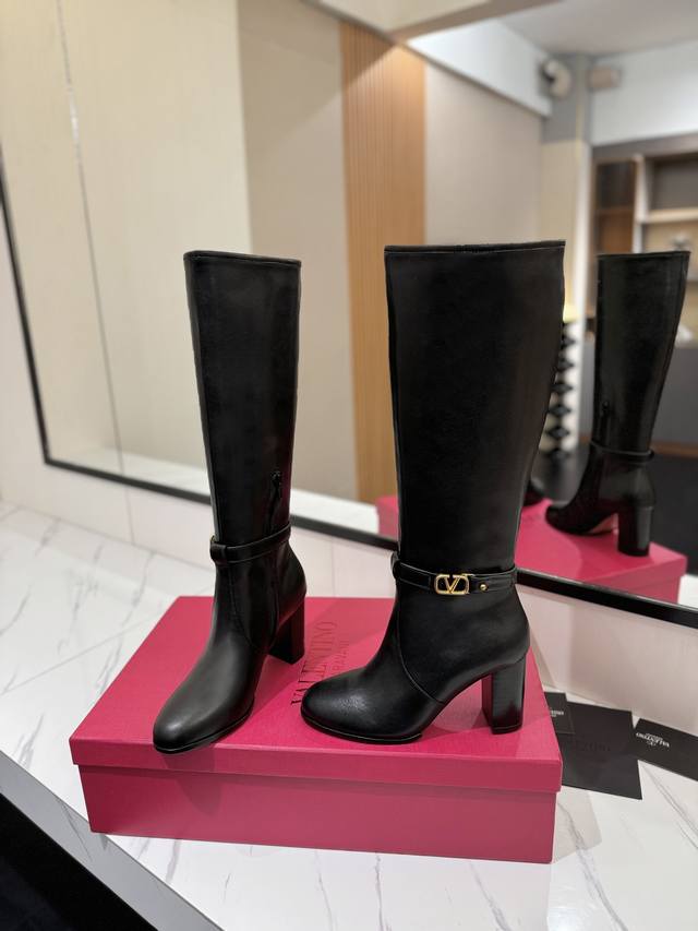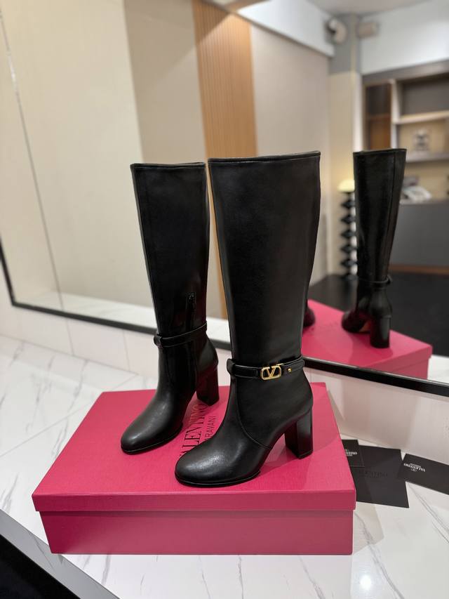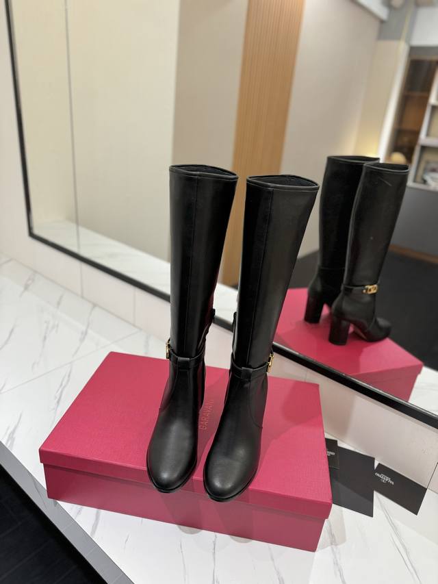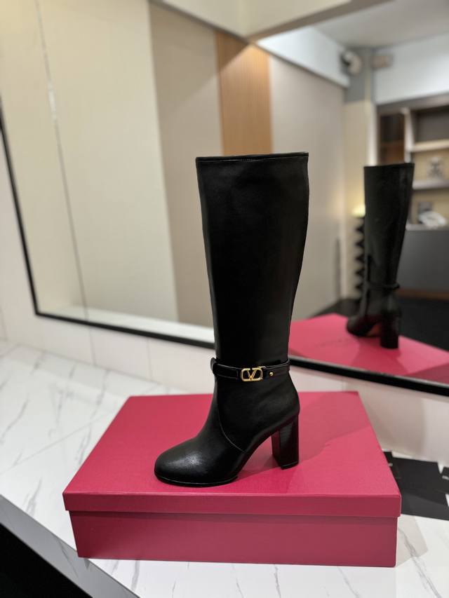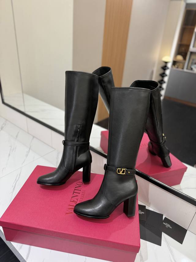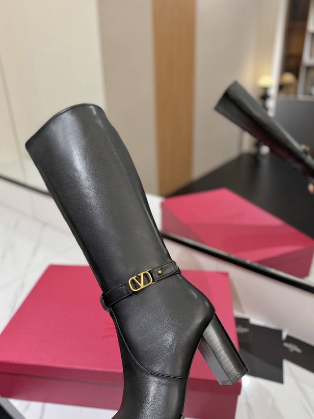工厂P价 女装女鞋 运动原单 新款华伦天奴高靴Valentino Garavani Vlogo Signature 小牛皮靴 -小牛皮饰带配以复古黄铜做旧效果Vlogo Signature搭扣开合 -内部侧面拉链 皮革包覆方跟 -鞋跟高:9厘米-内里牛皮-意大利真皮鞋底-码数:35-39 40.41.42定做码数