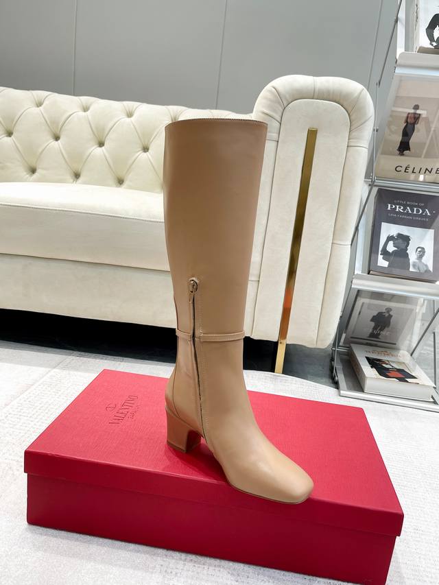年华伦天奴Valentino秋冬重磅推出女士Vlogotype小牛皮靴女靴绝绝,秋天总新的单品你值拥有,复古热风方头设计,一脚蹬切尔西,穿搭方便,上脚美美哒哒哒!