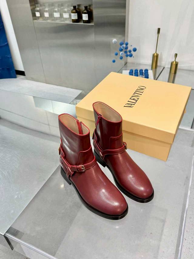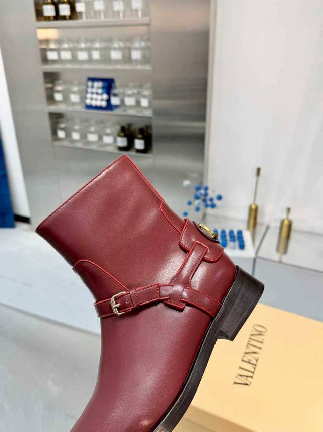 工厂P价 女装女鞋 运动原单 Valentino Garavanivl -V专柜最新款骑士小短靴外侧V扣锁版面设计- 顶级版本绝对史上最强货...